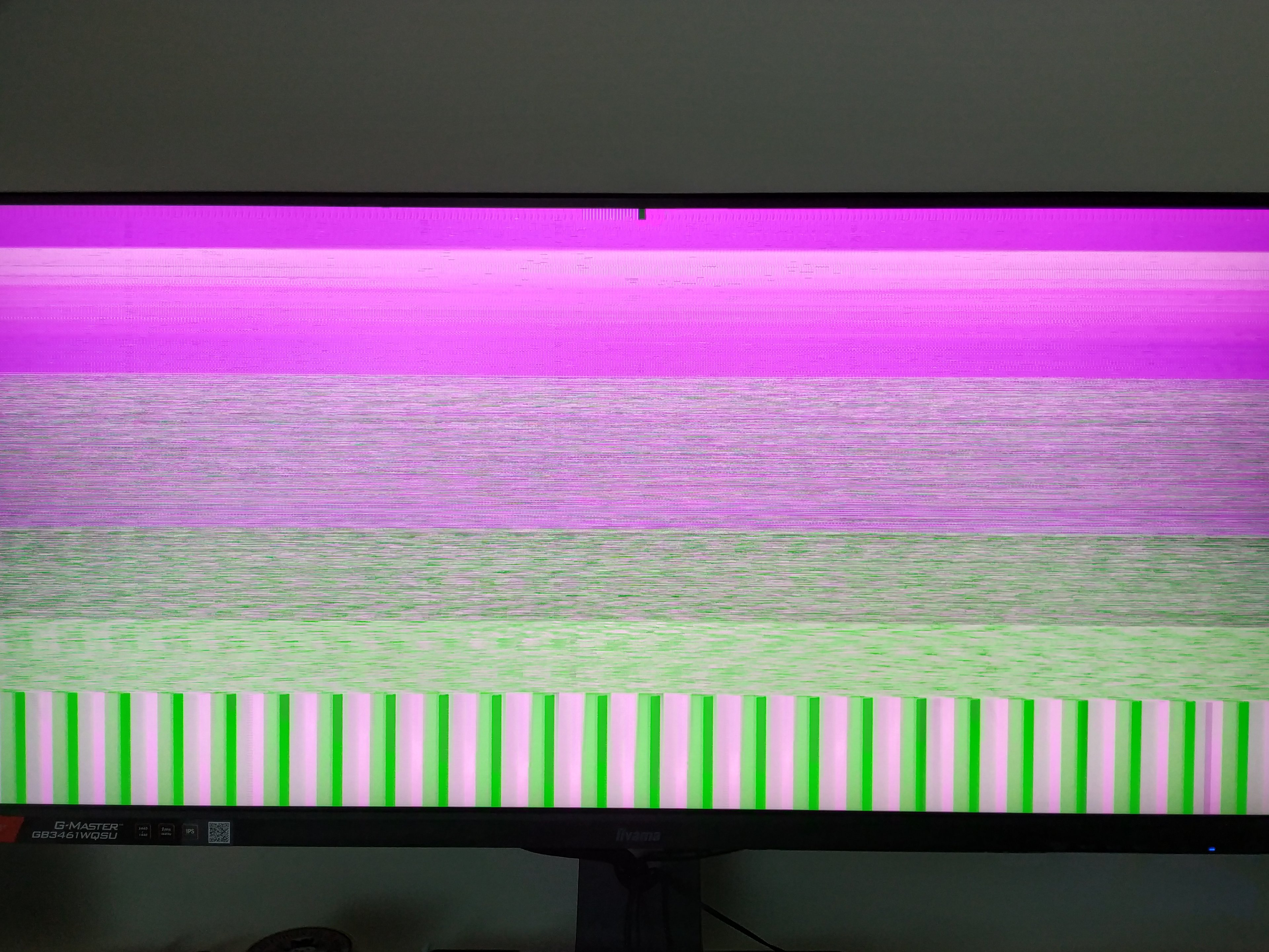 Beim Umschalten vom Arbeitslaptop an DP2 auf meinen Rechner an DP1 bekomme ich manchmal so "grünes Rauschen" angezeigt. Gefühlt nur dann, wenn der PC den Monitor quasi in der Zwischenzeit in Sleep geschickt hätte/Signal abgestellt. Einfach zu beheben durch kurzes an/aus vom Monitor.