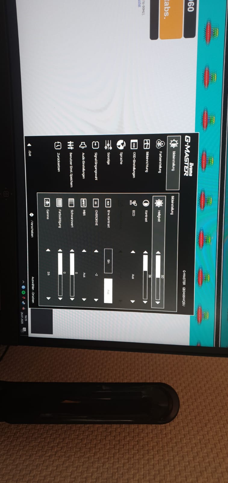 Als allerletzt hab ich noch ein paar Fotos von dem Einstellungsmenü für euch gemacht, was man selbst am Monitor alles einstellen kann für sich einen.