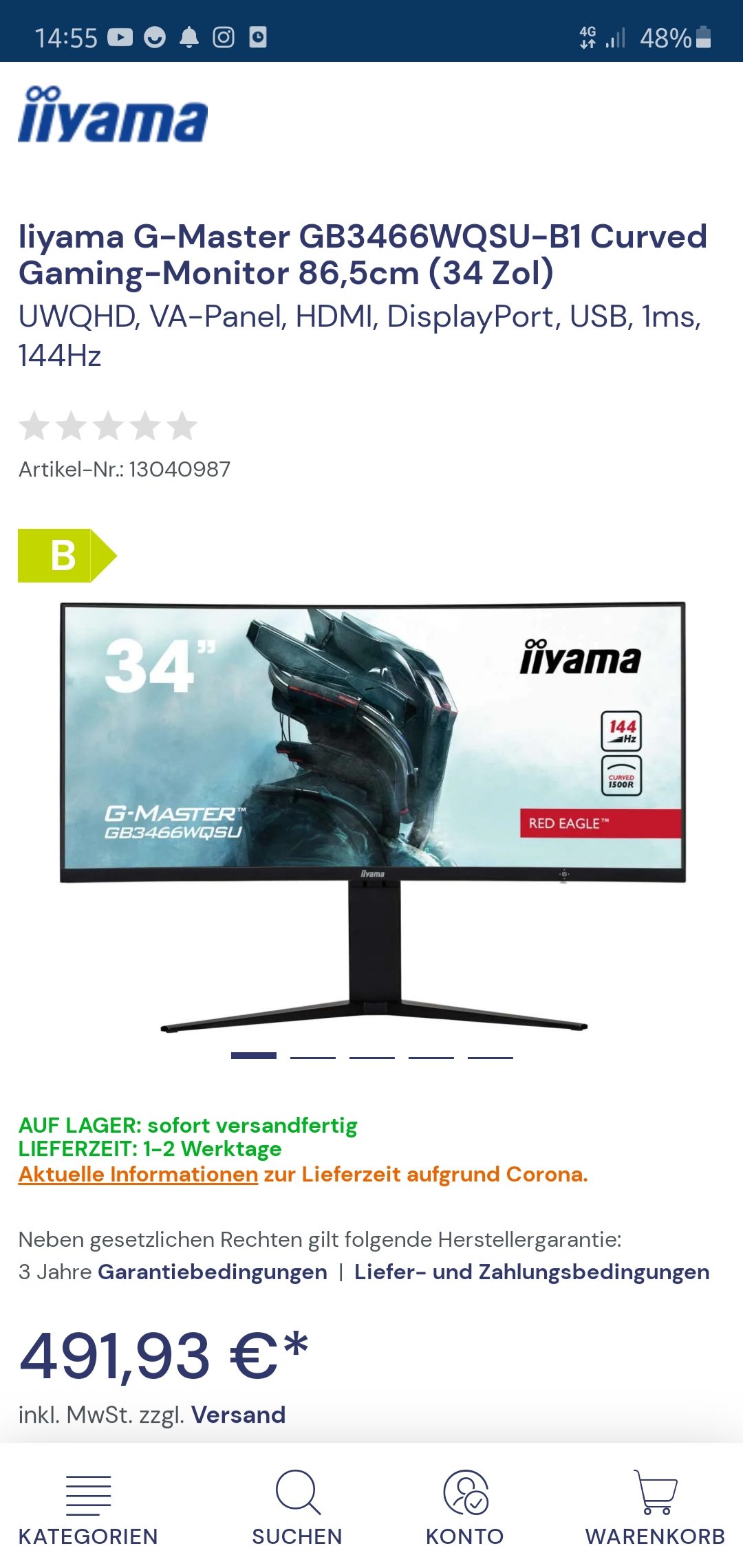 So sieht es aus. Ich hab den AOC von Amazon, kann also locker noch bis Anfang September testen, ob mich das Flickering stört. Die Antwort nach ersten Tests gestern ist halt irgendwie jein. Es ist bisschen wie Chlamydien: auch ohne (sichtbare) Symptome weiß man es ist da und es stört die Beziehung etwas... Genauso würde es mir mit dem 140 Hz gefummel gehen.