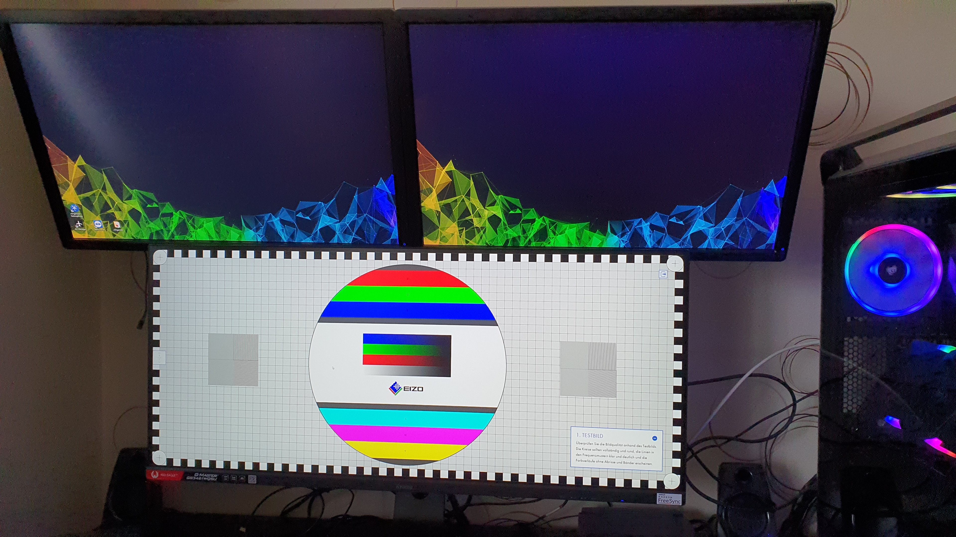 Aktuell habe ich 2 x Dell S2719DGF mit NVIDIA Surround verbund.,,,, somit habe ich 49" und eine Auflösung von 5120 x 1440 p