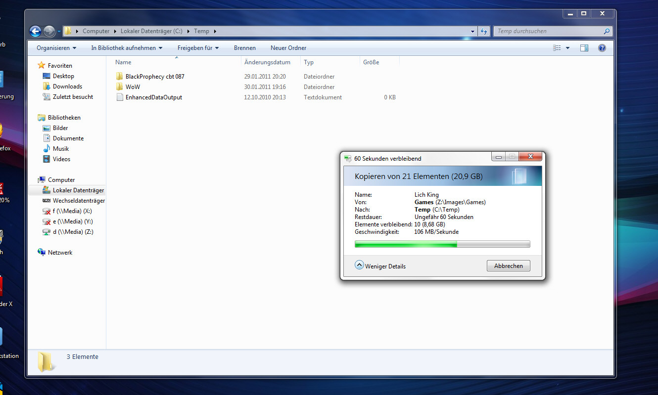 Die Frage ist also: Wie bekomme ich mit normaler Übertragung per Dateifreigabe genau solche schnellen Datenraten hin, wie per FTP?