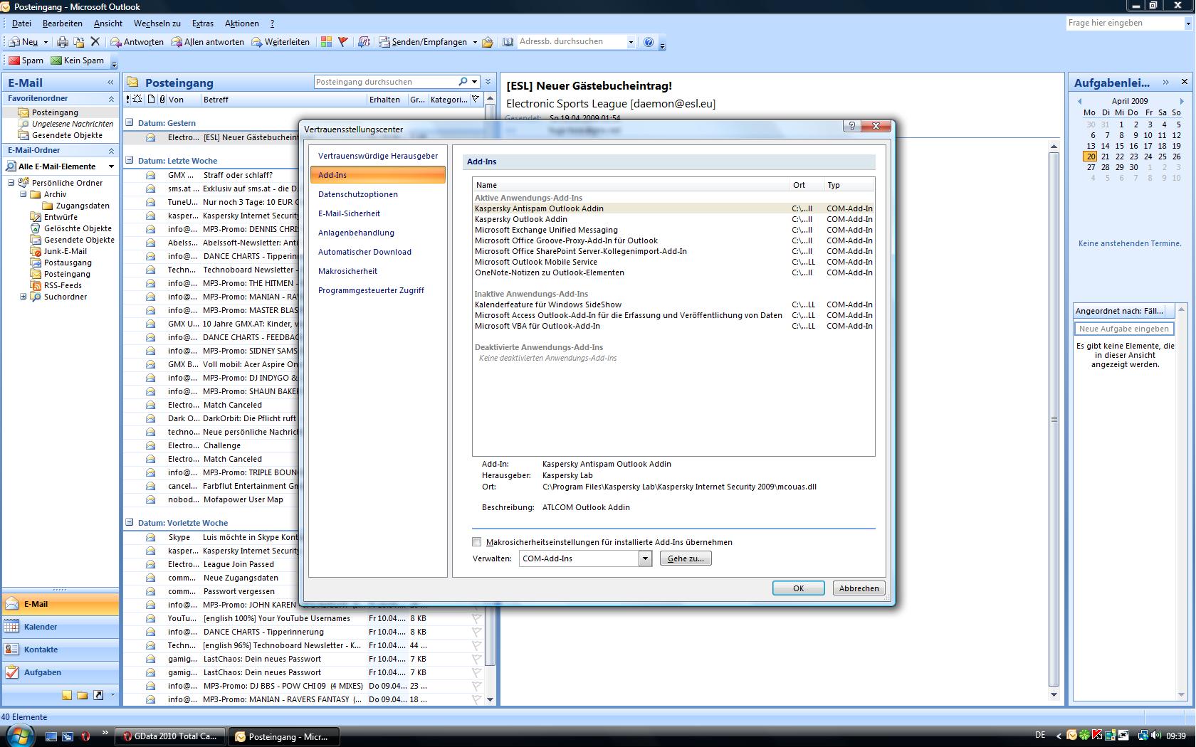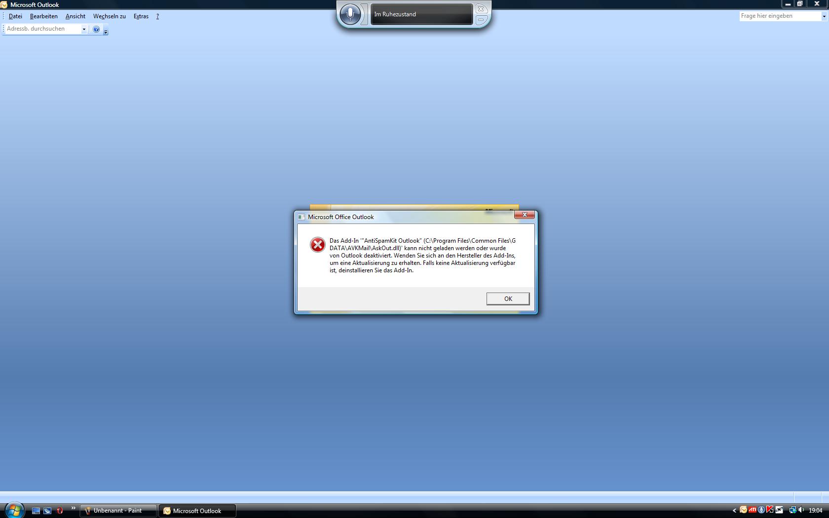 oder bei Outlook kommt wenn Outlook gestartet wird immer das irgendetwas von Gdata nicht gefunden wird
