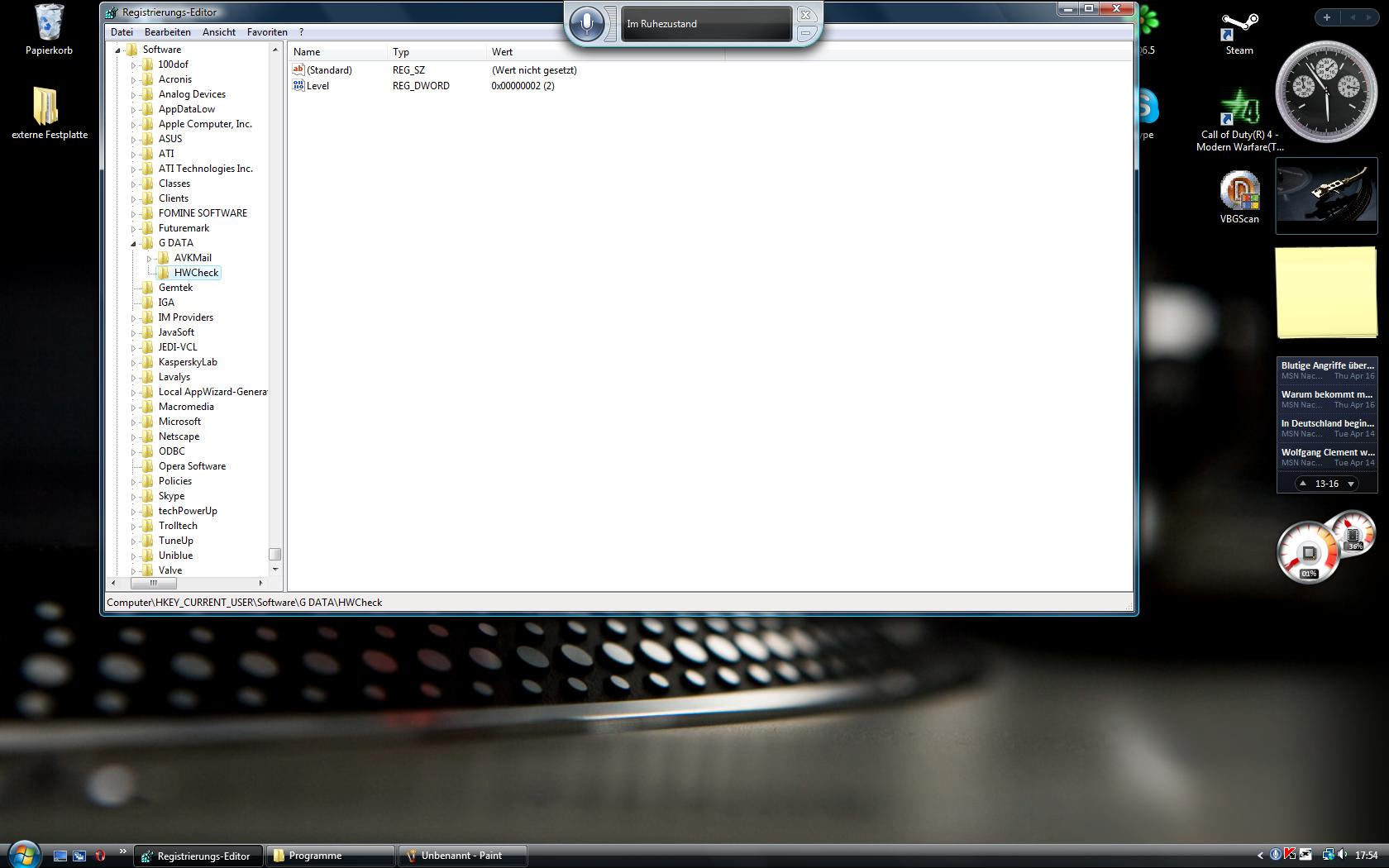 Naja alles gut und schön aber irgendwie wird GData nicht komplett entfernt z.B.: gibt es noch immer das Symbol für die Sidebar welches den Status des Wächters anzeigt.