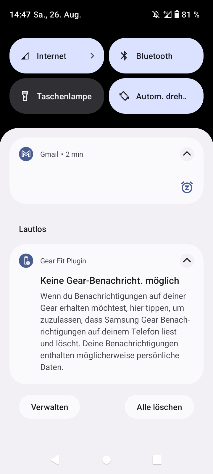 das liegt wohl daran, dass die Benachrichtigung des Gear fit plug in nicht zugelassen wird.