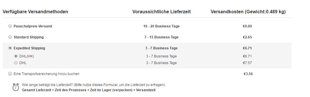 Nun gibt es eben die 2 bzw. 3 verschiedenen Versandoptionen. Ich würde gerne die Expedited Shipping Versandart bevorzugen, da 15 Tage leider recht lang sind und ich 1 Woche vertreten kann ohne Handy. Und dort gibt es eben die 2 Auswahlmöglichkeiten DHL(Hk) und DHL. Was ist der Unterschied zwischen den beiden und was ich gelesen habe, muss ich bei denen noch eine Einfuhrumsatzsteuer extra bezahlen, aber kein Zoll?