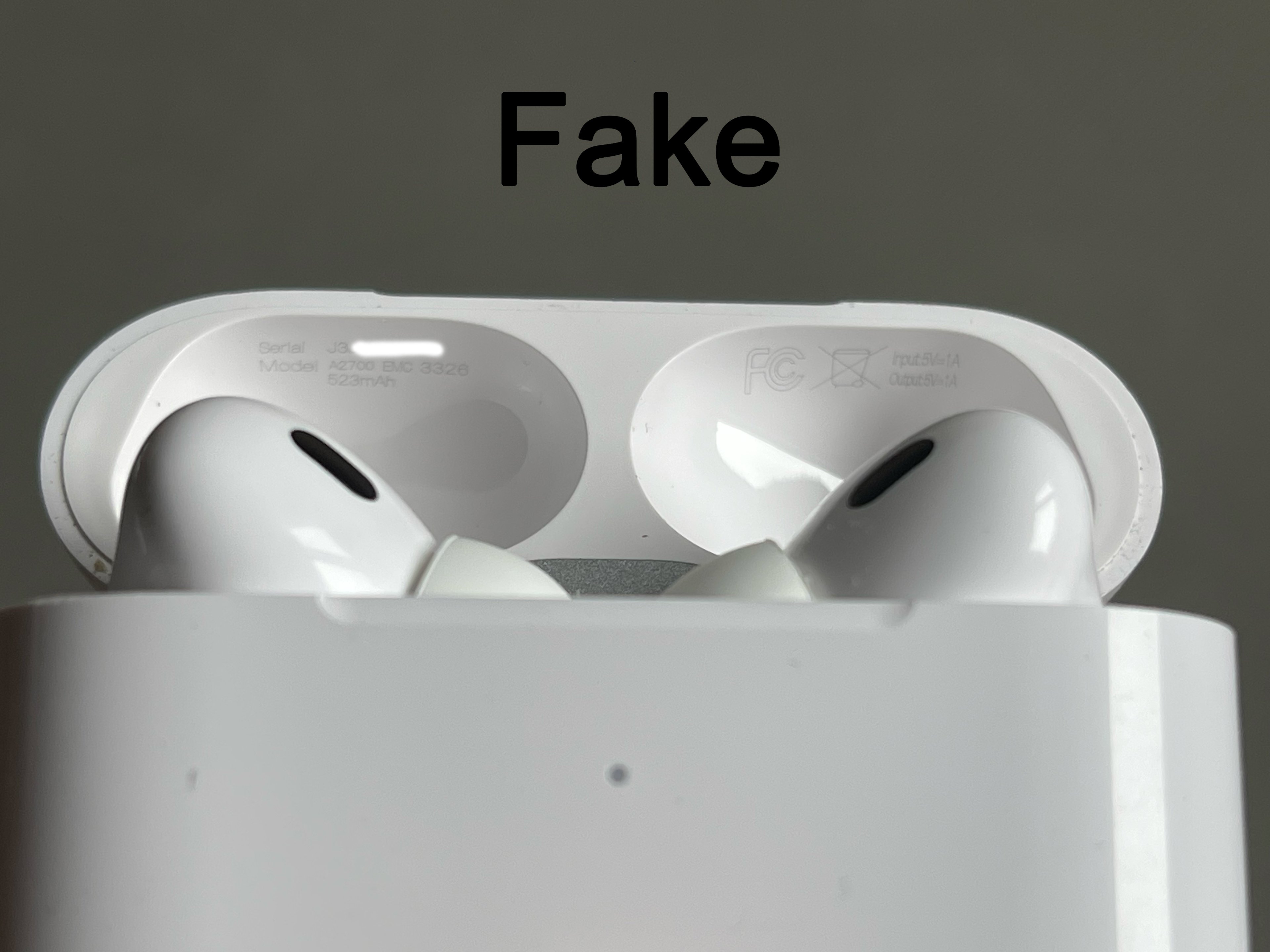 - Auf der Innenseite der AirPods befinden sich eine indiviuelle Seriennummern der jeweiligen AirPods und ein CE Logo. Die Gefakten haben das Logo nicht und ihre Seriennummern sind die gleichen wie die vom Case/Verpackung.