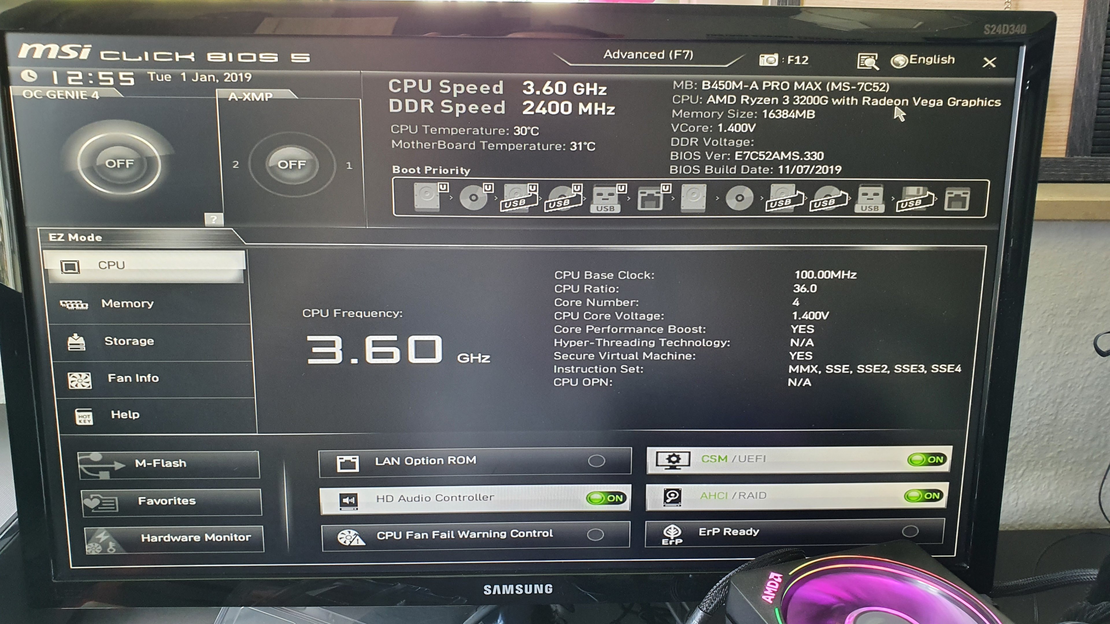 Also ich hatte mal einen athlon 200GE, da ist der PC gar nicht erst angegangen, bis ein Biosupdate kam. Ausserdem ist es eh ein MAX, daher, und durch den Tausch schliessen wir Mainboard aus.