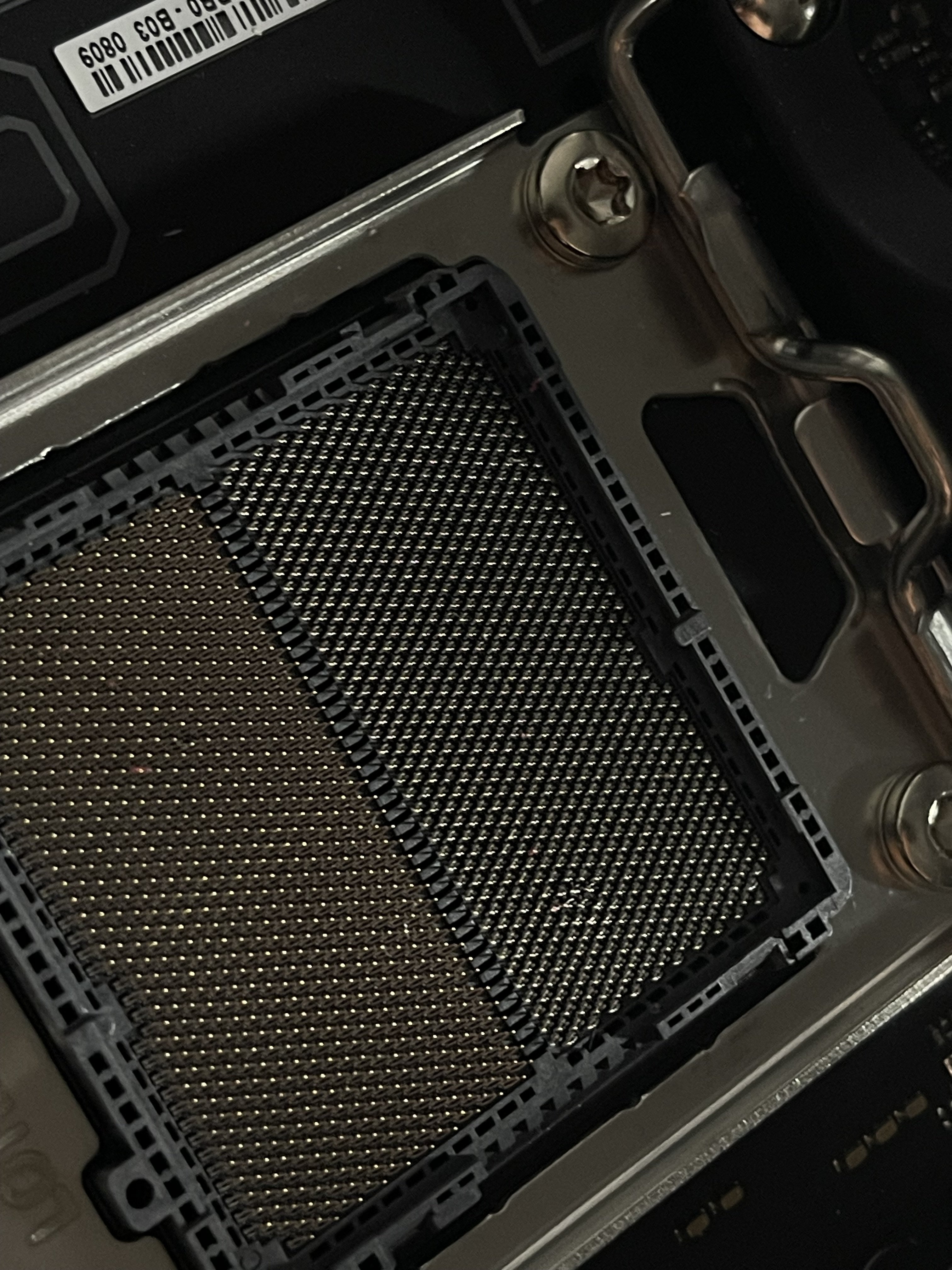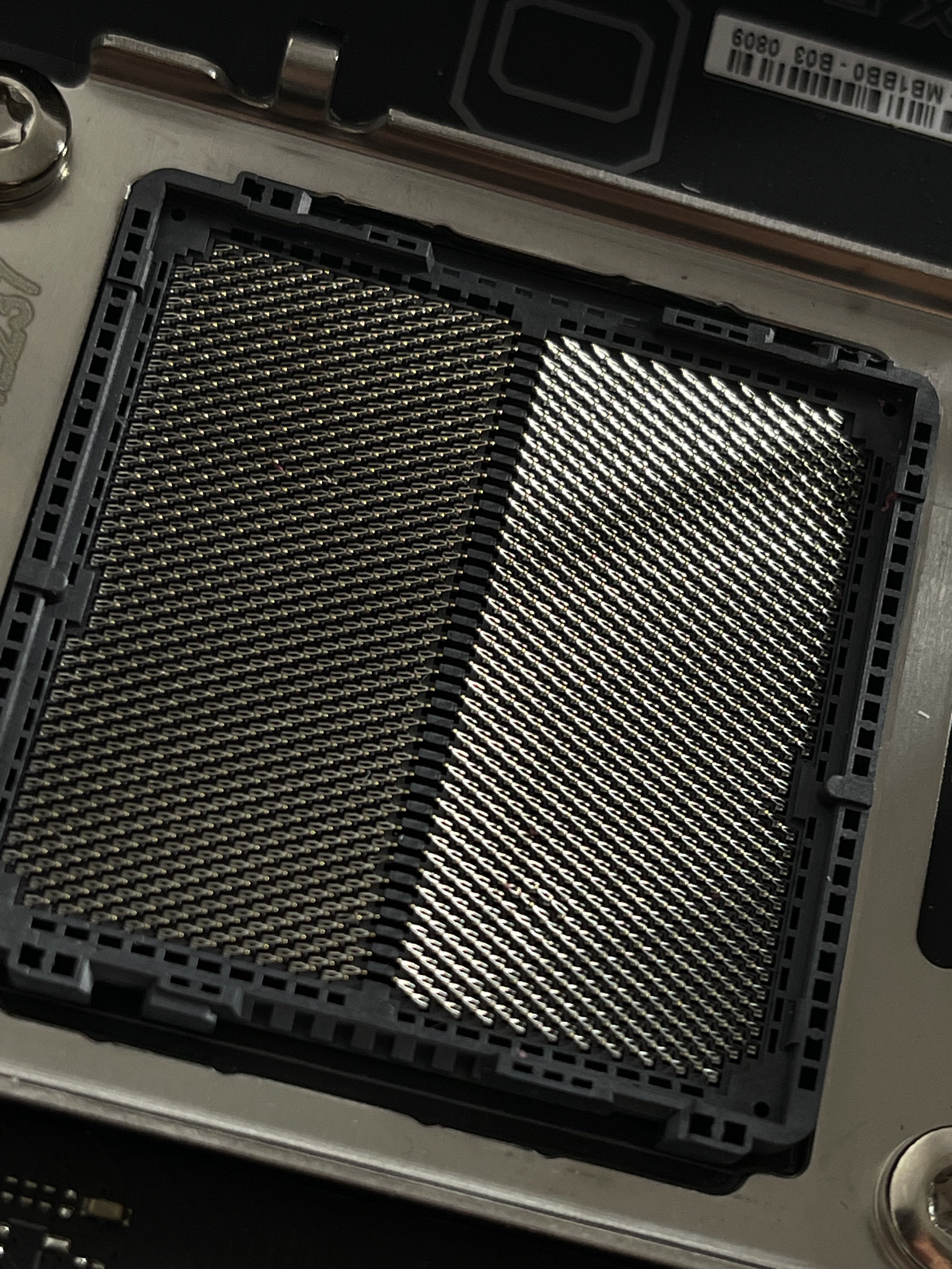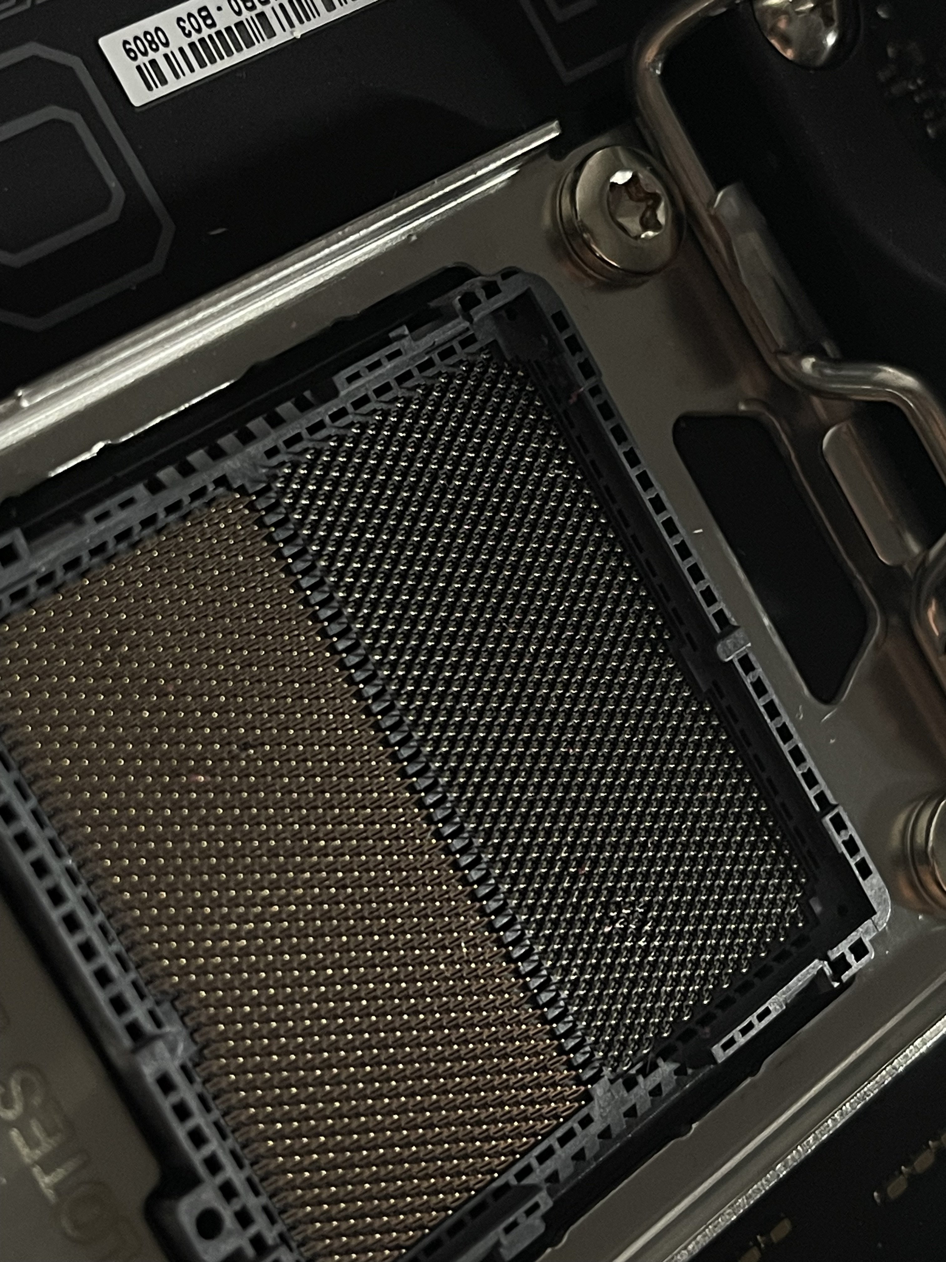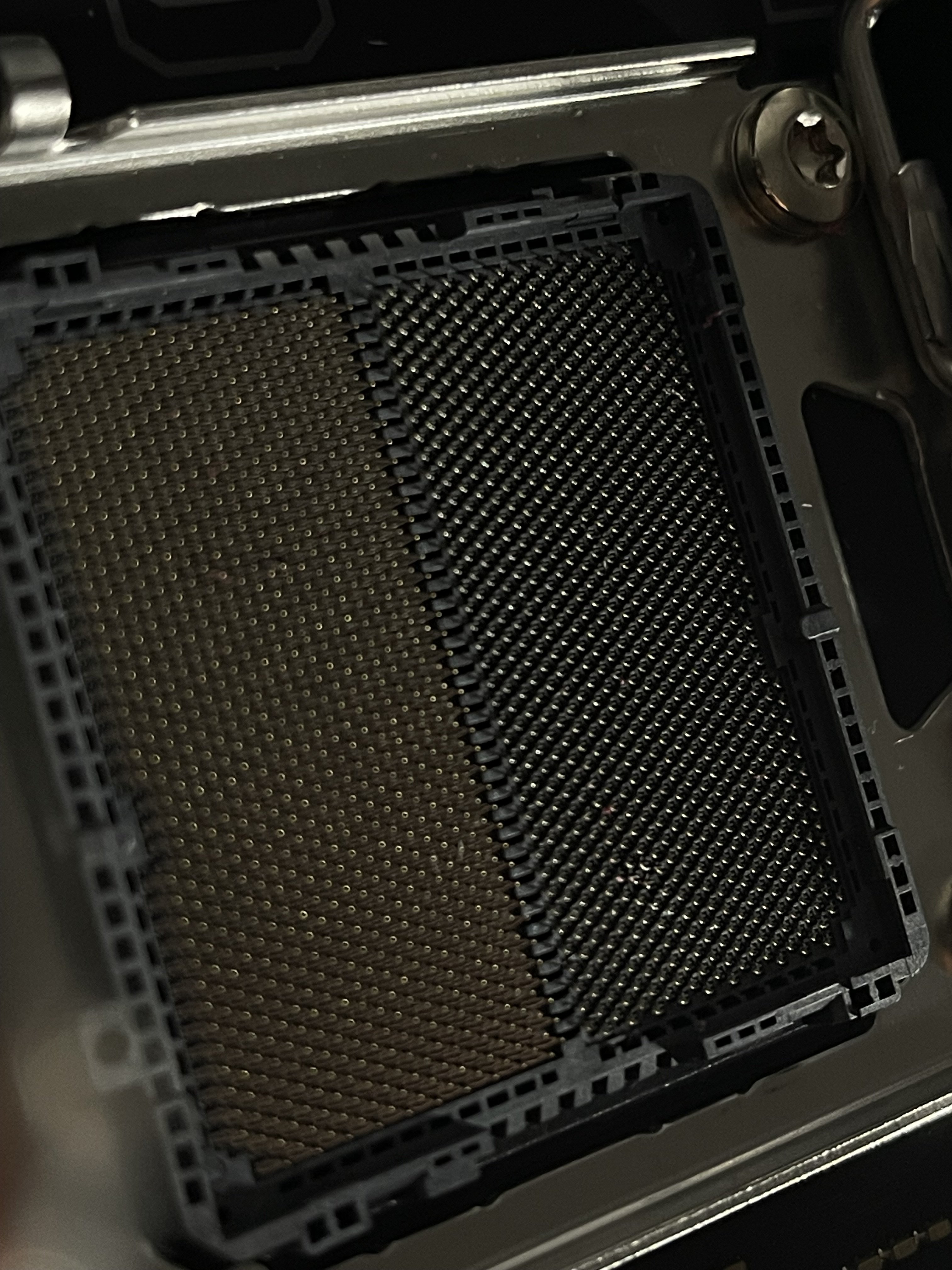 Ich bin mit Zahnseide durch die Pins gegangen und kann sagen, dass die Pins „nur“ leicht verbogen sind und sich nicht berühren. Mit ziemlicher Sicherheit weiß ich aber nicht, wie das ist, wenn der Prozessor drauf ist.