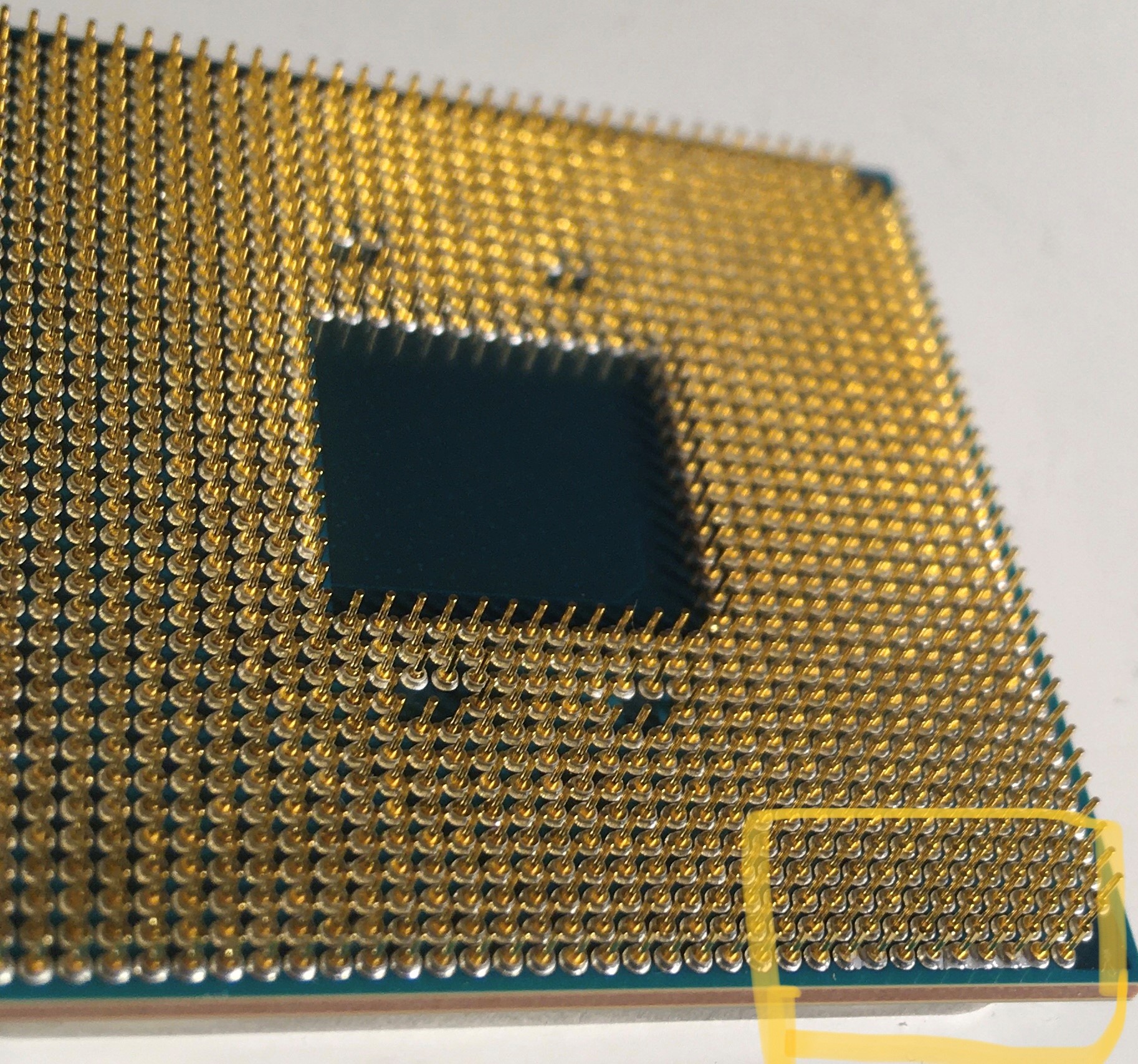Nun habe ich das Internet viel durchforstet aber nur einen einzigen anderen Thread mitsamt Foto im AMD-Forum finden könenn wo ein User ebenfalls mit einer Ryzen CPU (in seinem Fall 3000er Serie) solche gebrückten Pins besitzt und die CPU reklamiert.