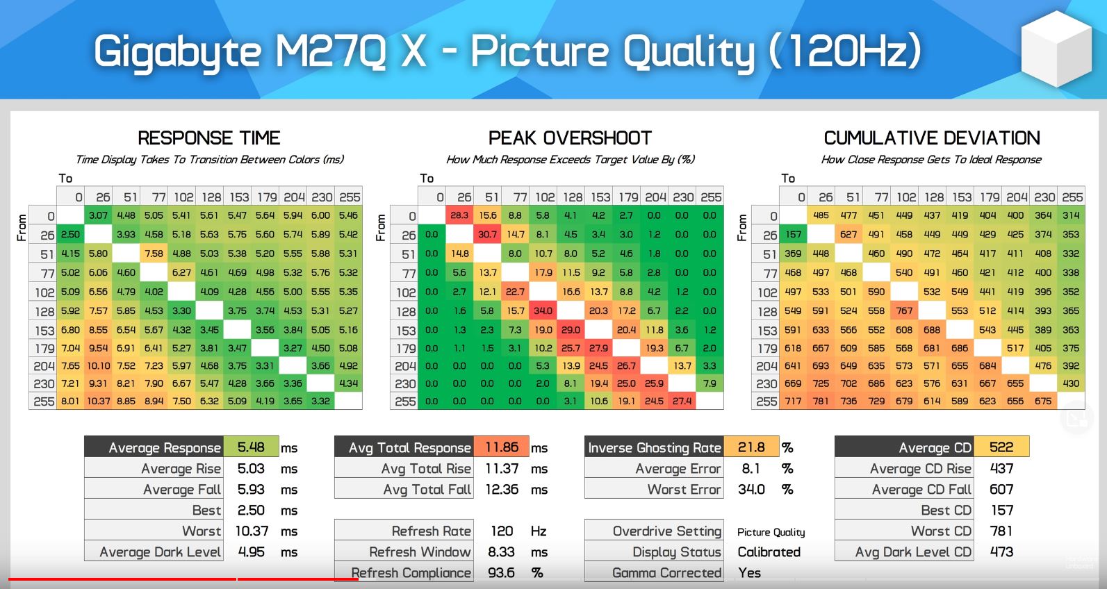Ich habe echt versucht mich da selbst einzulesen und einzuarbeiten aber umso mehr ich lese umso verwirrter und unentschlossener werde ich. Als ob mich Response Times, Overshoot und Comulative Deviation nicht schon genug verwirren würden wenn ich versuche die Bunten kästchen und was dadrin und dadrunter steht zu entschlüsseln wenn ich die videos von HardwareUnboxed (HWU) schaue, lese ich dann in verschiedenen foren auch noch von Overdrive, Ghosting, Reverse Ghosting, LFC stottern, VRR bei gsync oder auch ohne Gsync und was weiß ich was sonst noch so und leg das thema dann völlig fertig und enttäuscht wieder für ein paar wochen zur seite.