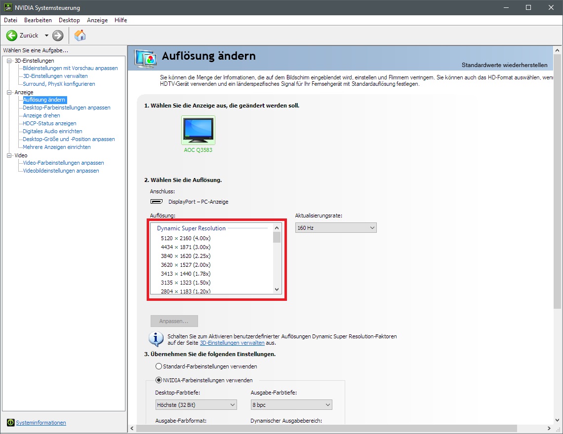 von 2013 - 2015 hat das ganze einen 1900x1200 Samsung Schirm versorgt, was auch ganz gut ging. Als der in die Binsen ging habe ich mir einen 3440x1440 Schirm von Dell geholt, der aber "nur" mit 60 Hz arbeitet.
