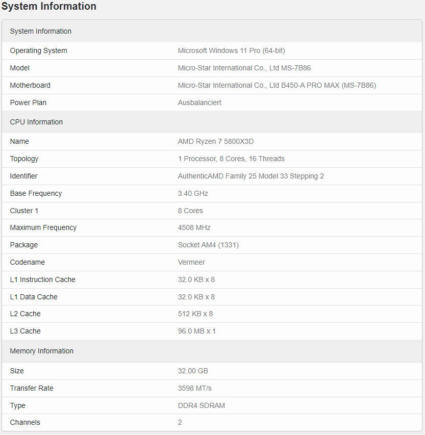 Temperatur max. 65°C - wo bzw. wie beobachte ich das Powerlimit?sTOrM41 schrieb:Da läuft irgendwas Multithreaded nicht ganz richtig bei dir, den selben Score habe ich mit dem 5700X.