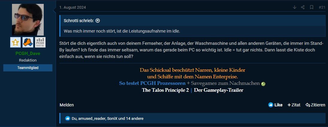 Zudem Thema gab es von PCGH CPU Tester/Redakteur Dave aus dem 9950X Test eine guten Kommentar.