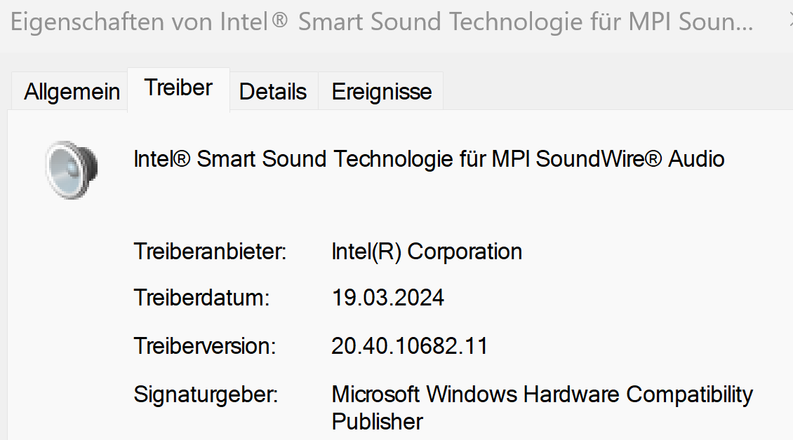 Hatte dann gestern den Treiber für die GPU geladen und installiert. Aber puste Kuchen, hatte kein Ton, da kein Audiogerät gefunden wurde. Habe dann bei Geekom für den Gt1 Mega das Treiberpaket geladen und dort ein Treiber namens Intel Smart Sound Technologie kurz SST. Meine Frage, der Treiber ist von 2023 und ich weiß nicht, wo ich einen aktuellen finde. Und wieso braucht man bei einem aktuellen Intel System einen separaten Treiber für den Ton? Kenne das von AMD und Nvidia das man da alles All-In-One bekommt, ohne noch extra Treiber zu laden.