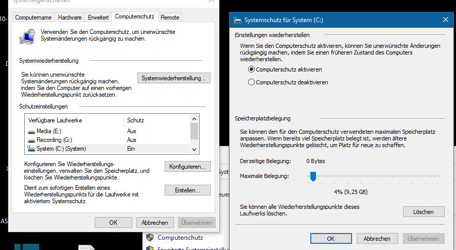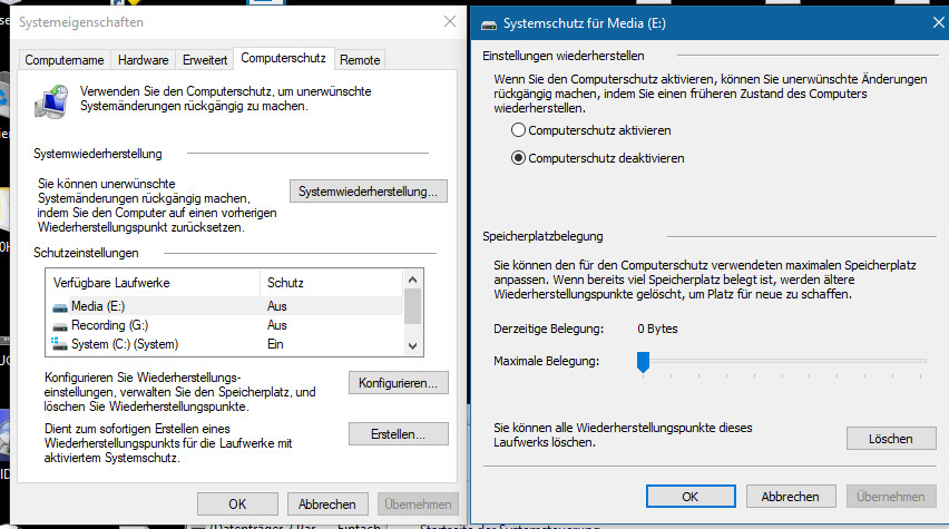 Die Wiederherstellungspunkte und was mit dem "Computerschutz" zu tun hat, wird dagegen lokal auf dem Windows-Laufwerk gesichert; die Recovery findet diese und kann den PC im Problemfall auf einen früheren Stand zurücksetzen.