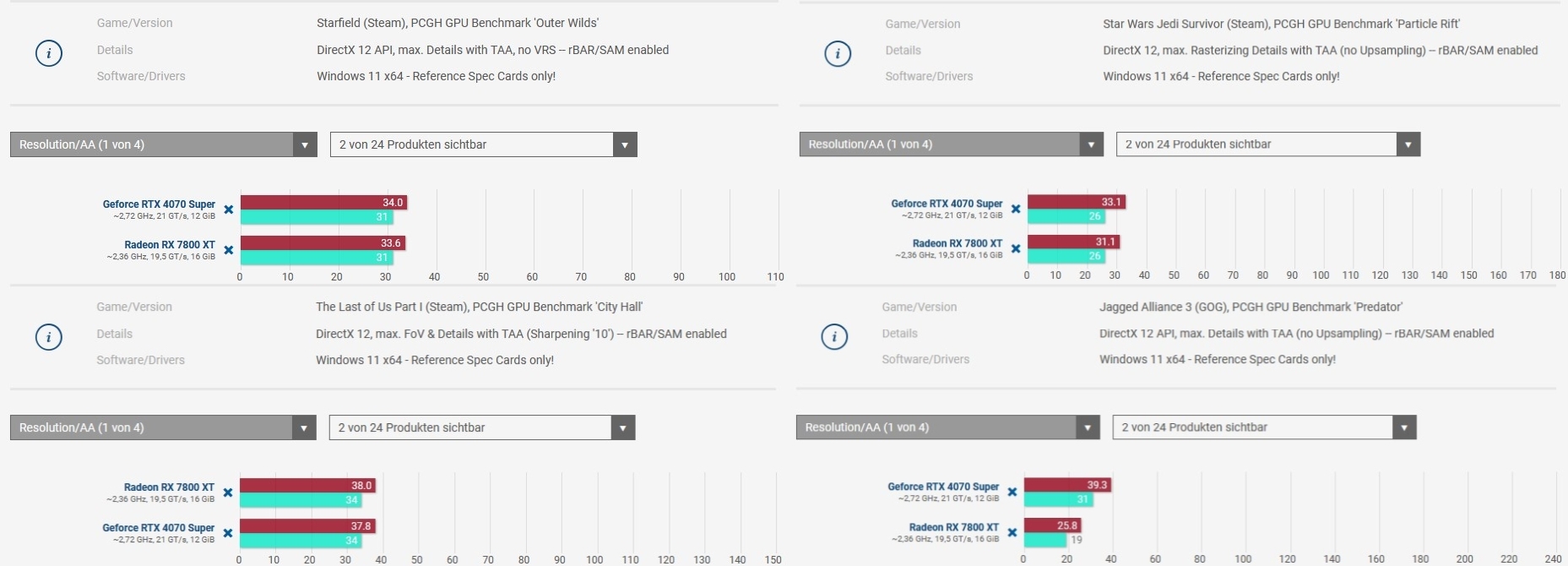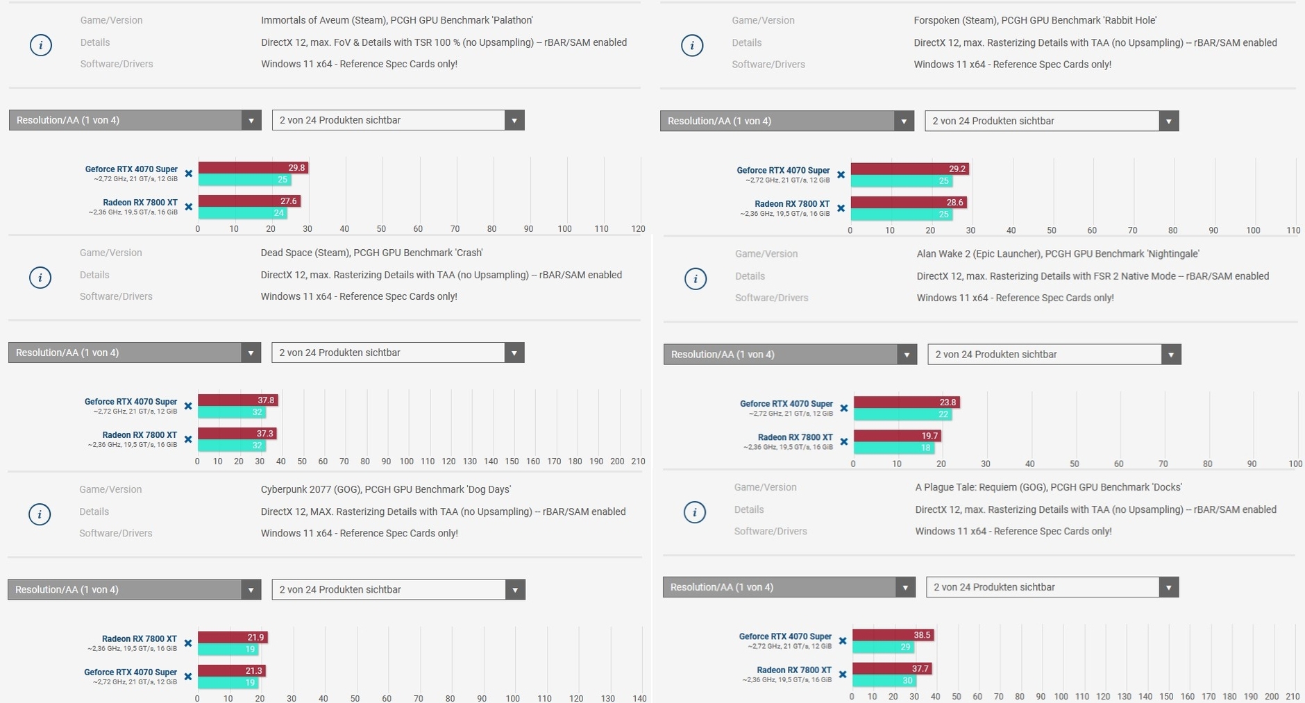 Finde einfach keinen gescheiten Benchmark wo die 4070 Super gegen die 7900 XT im Upscaling bei UHD (mit und ohne Raytracing) verglichen wird.