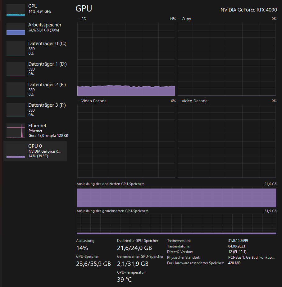 Den Fehler hatte ich auch gehabt. Damals mit der RTX 3090 + 32 GB RAM und nein, hatte im Hintergrund wegen genau diesem Fehler GPU-Z offen gehabt und zum Zeitpunkt des Fehlers war der VRAM nicht komplett gefüllt gewesen. Der RAM war laut Anzeigen zwischen 20GB und 26GB gefüllt gewesen - also noch genug "Luft" nach oben bis er voll wäre und auch der VRAM der RTX 3090 waren laut Anzeige bei 20GB - 22GB gewesen. Sprich = nicht voll.