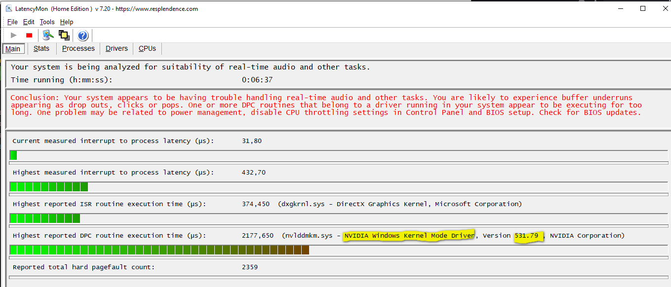 Ich würde mich auch nicht verrückt machen lassen. Das ist nur ein grobes Schätzeisen, welches sinnvollerweise erst dann zum Einsatz kommt, wenn man etwas wie Knacksen/Drop outs hört und die möglichen Ursachen ergründen will. Solange Du bei "normaler" Audionutzung keine Auffälligkeiten merkst, einfach ignorieren. Ich hatte zuvor mit der erhöht ausgewiesenen Latenz auch nichts gemerkt.