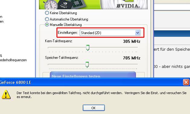 Unendlich aufwendige Forschung in Richtung 6800LE/freischalten/Übertakten...ok, Google ergab, daß es offenbar mit einigen freischaltbaren Pipes, die sonst nicht auffällig waren, Probleme beim Übertakten respektive mit der treiberinternen Testfunktion gibt: