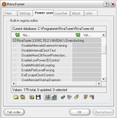 Ich behaupte, dass die in (c)s angesprochenem Quote gemeinten Registryhacks in diesem Menü zu finden sind. Ich hab aber bisher noch keine Ausbildung bzgl. des Rivatuners geniessen dürfen, deshalb würde ich lieber weiter auf google suchen. Irgendwo stehts sicher erklärt.
