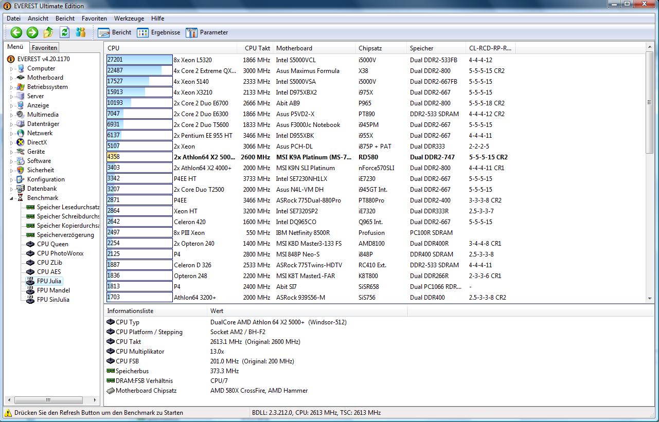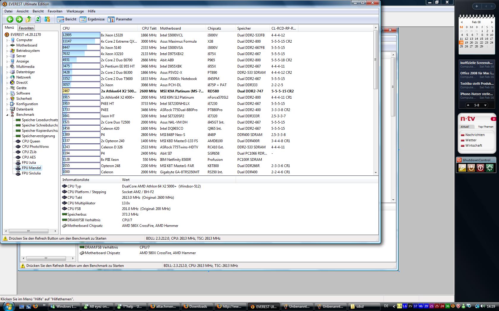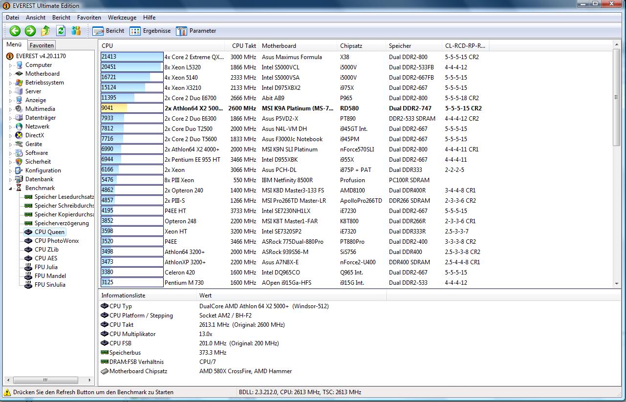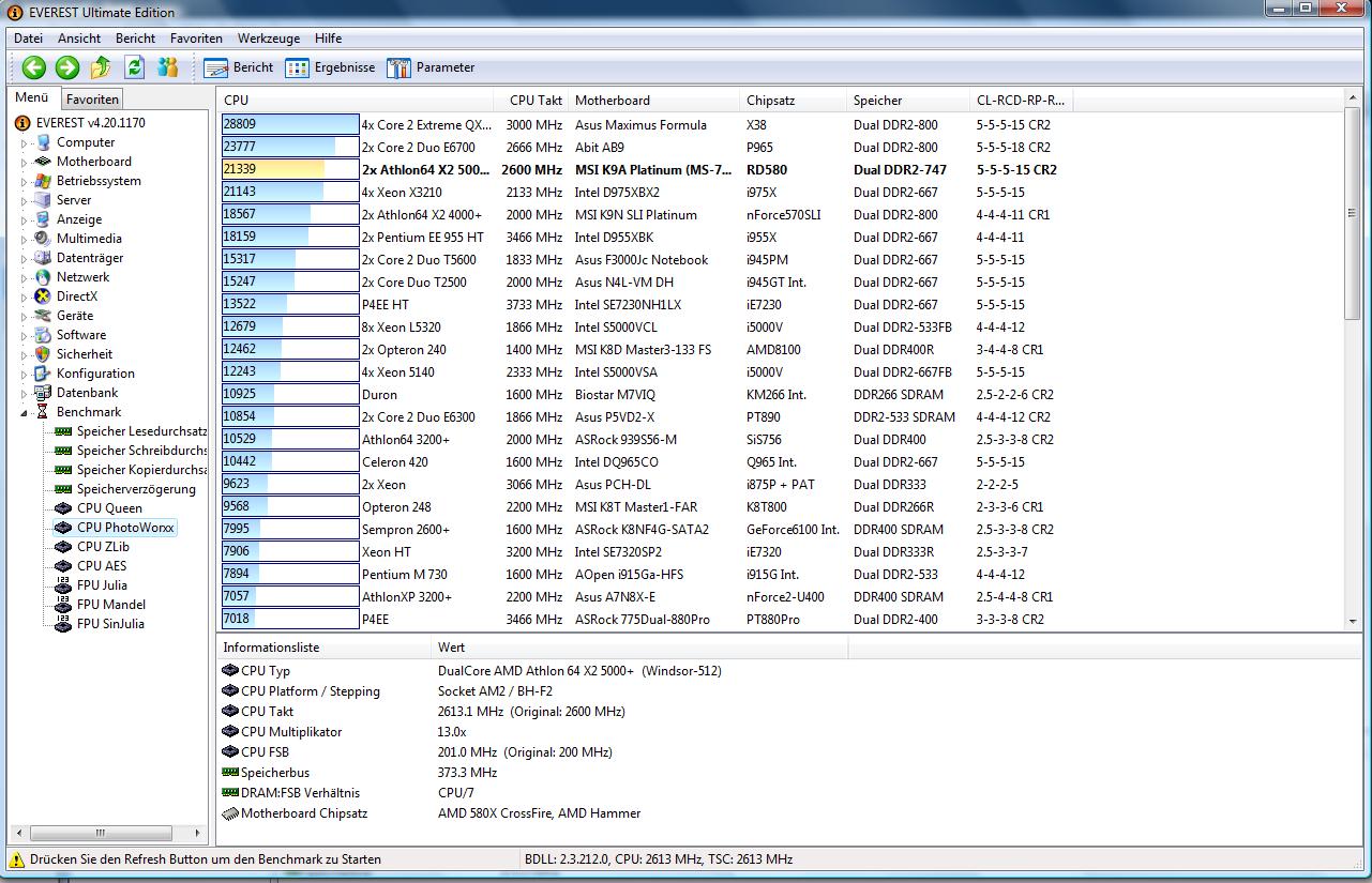 Everest hat immer einen Benchmark dabei. Was micht stutzig macht , ist dein DRAM-Frequency. Diese steht auf 373.4Mhz, das kommt mir irgendwie extrem komisch vor....