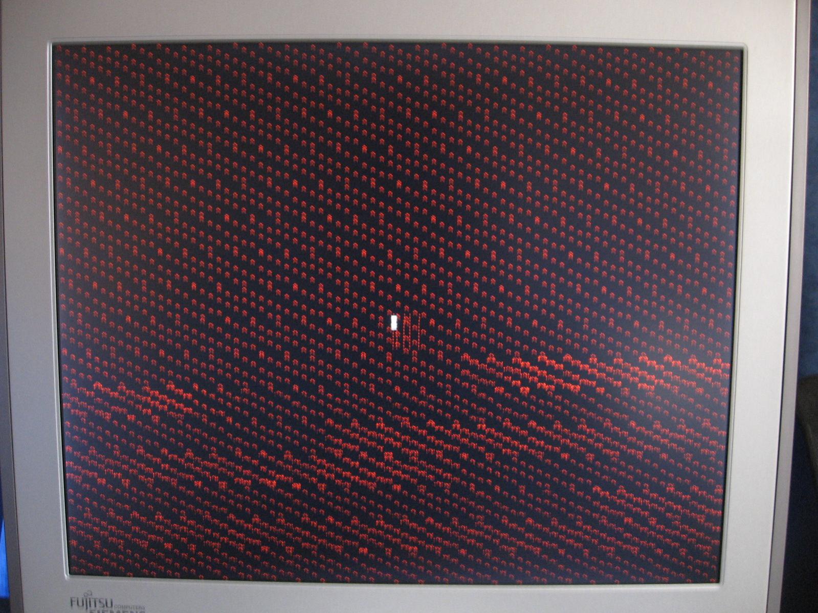 Im Anhang befinden sich der (bisher einzige) Bluescreen, sowie die roten Fragmente, hier bereits während des XP-Startlogos noch vor dem Anmeldebildschirm aufgetreten.