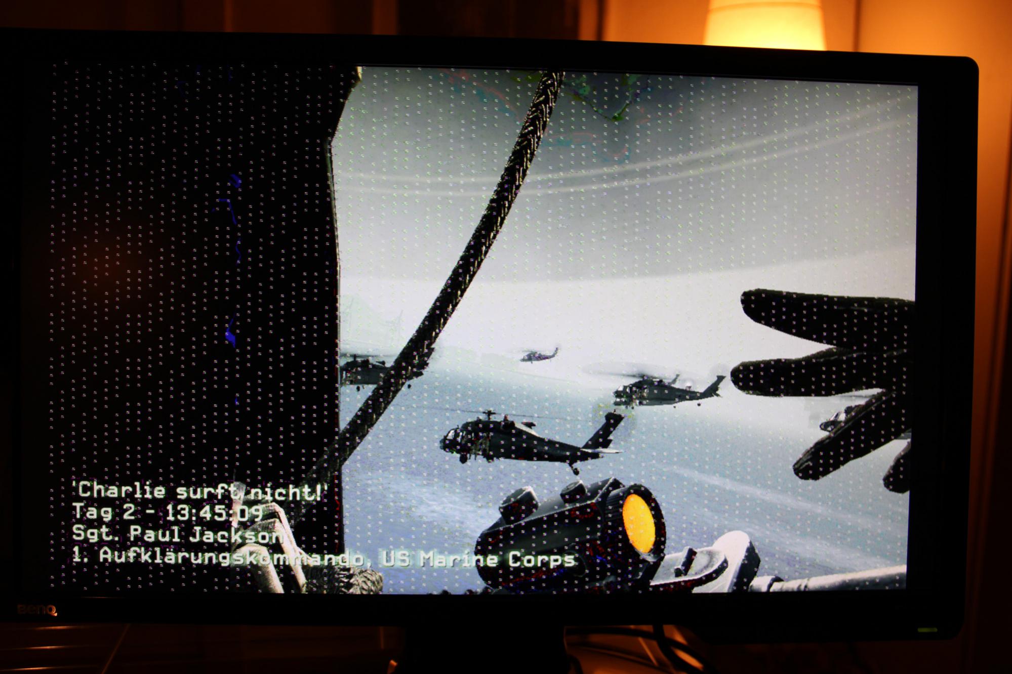 Nun ist es aber so, dass sich der PC komplett aufhängt und auf dem Bildschirm seltsame Schlieren erscheinen, wenn ich ein Spiel starte (bisher getestet: C&C Generals, COD4, GTA4). Keines dieser Spiele funktioniert also, dh. der Fehler tritt sofort auf, sobald man als Spieler loslegen will (Vorschausequenzen werden fehlerlos gezeigt). Ich muss dann immer den kompletten PC über den Powerknopf sofort runterfahren.