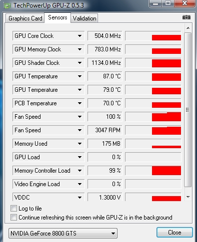 Fühlt sich die Karte auch 'warm' an? Vielleicht ist es nur ein Messfehler, weil die Sensoren ihren Geist aufgegeben haben - oder was auch immer da seinen Geist aufgeben kann.
