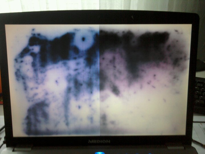 Jetzt geht das ganze aber noch viel krasser los: Beim surfen hat sich das Ding aufgehangen und nach ausmachen und erneutem anmachen sah das Display dann direkt so aus wie im Anhang. Also ich seh noch nichtmal DOS beim hochfahren