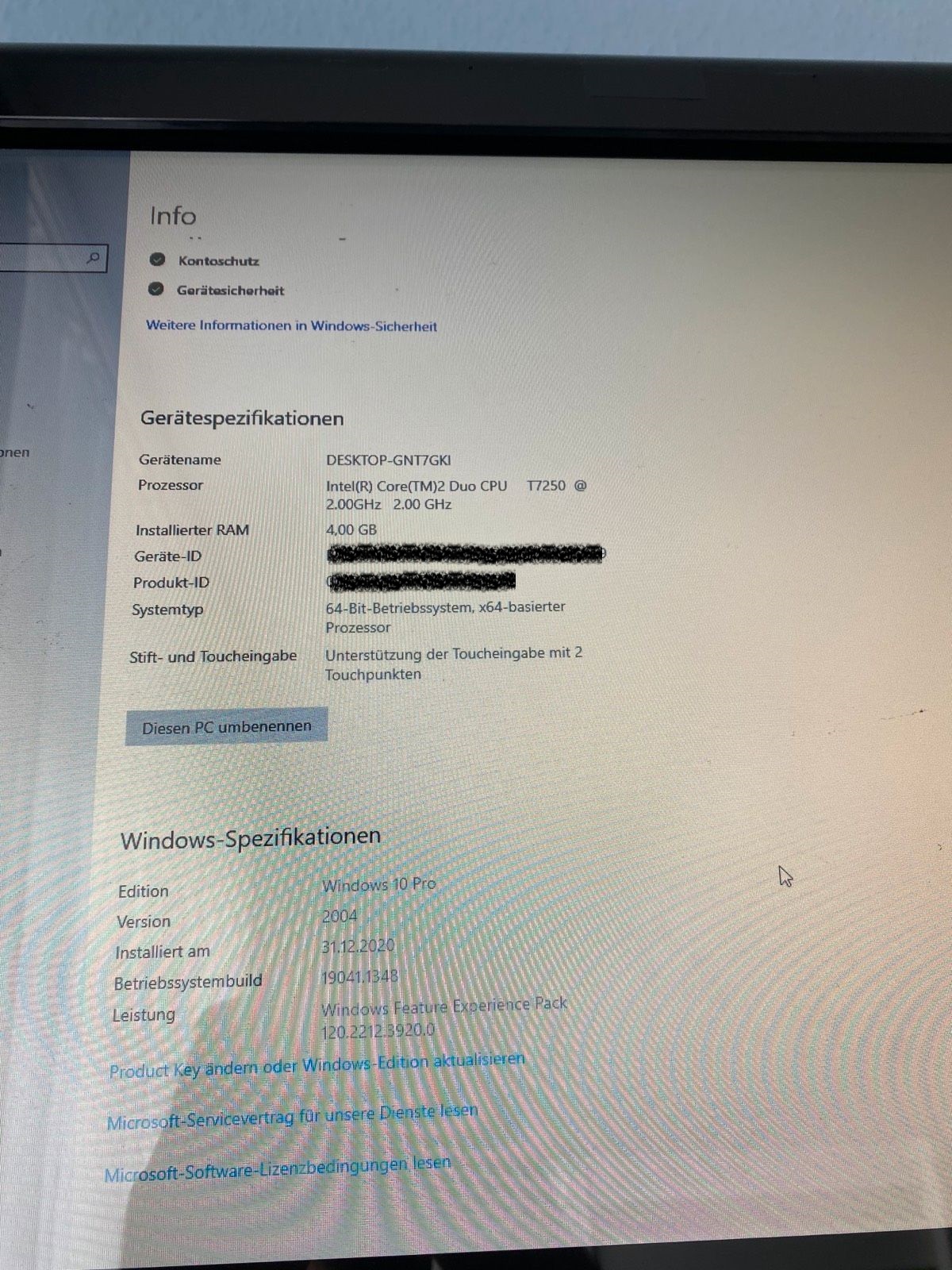 Aktuell ist eine CPU Intel Core 2 Duo, 2000 MHz Typ: T7250 und die im Titel genannte Grafikkarte verbaut.