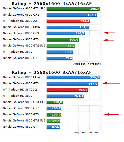bin ich froh, dass nicht auf die 9800gtx gewartet hab und mir schon vorher ne 8800gtx gekauft habe. trotzdem verwunderlich, dass nvidia mittlerweile mehrere Karten hervorbringt, die sich leistungsmäßig nur so geringfügig unterscheiden, dass die anderen 9800er Karten nochmal geringere Abstufungen bringen würden. komplette kundenverwirrung ist da wohl angesagt.
