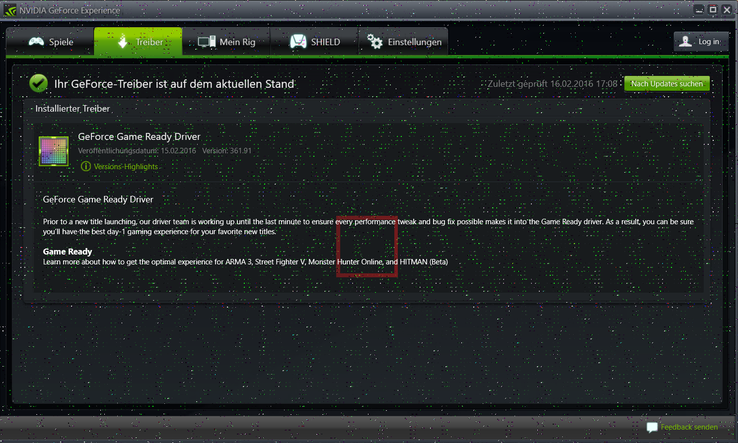 Sie kurzem bekomme ich in dem Nvidia GeForce Experience Programm folgendes Bild: