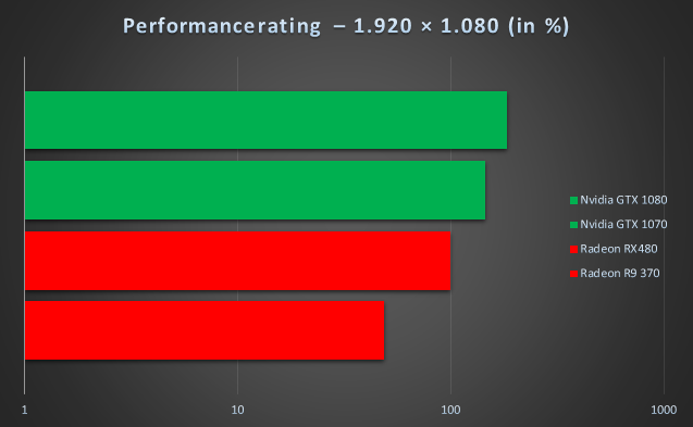 Dieses Balkendiagramm ist von der Nvidia Marketingabteilung wirklich perfekt erstellt worden. Selbst ein kleiner Vorsprung von 11 Prozent sieht dadurch groß aus und der Balken bei der Power Efficiency wirkt, als würde die GTX1060 die RX480 regelrecht in den Boden stampfen