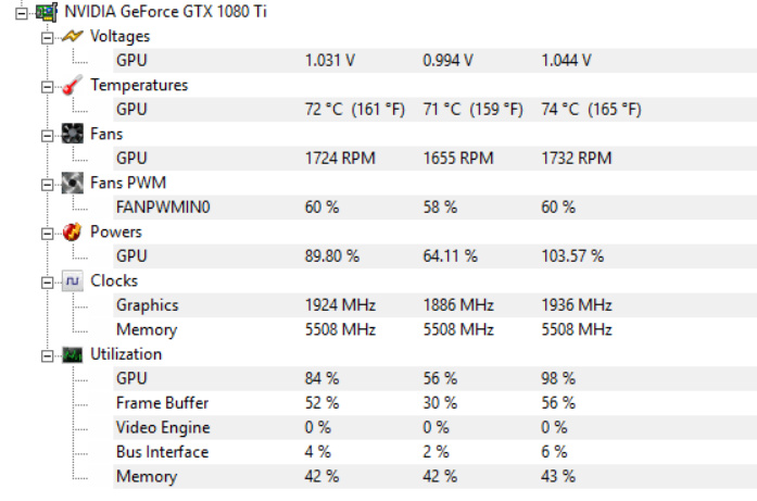 kurze Erklärung: Lüfter laufen bei mir bis 60° bei 900rpm, da die Karte bei 1440p/144hz nur auf 1,4ghz runtertaktet und somit ginge der Lüfter dauernd an/aus. (nur bei 120hz taktet sie runter).