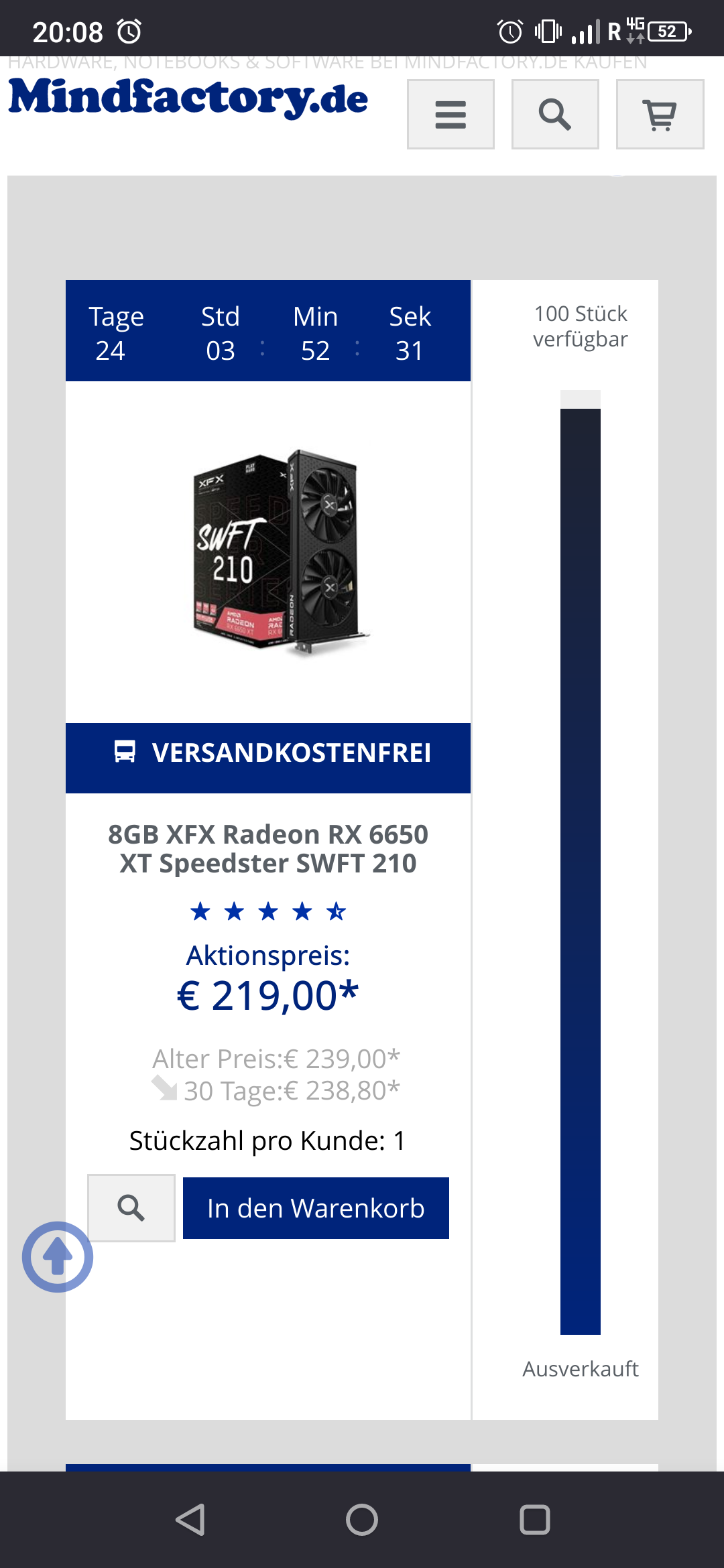 Bei den Mindfactory DAMN-Deals gibt es aktuell die RX6650XT für 219€.