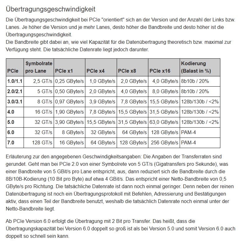 Ich würde nun gerne eine NVMe M.2 SSD einbauen; wäre es möglich, die Grafikkarte vom PCI-E 3.0 (x16) Port abzunehmen und über einen Riser wie z.B. diesen oder diesen hier an den PCI-E 2.0 (x1) Port anzuschließen? Die Grafikkarte hinge dann an einem PCI-E 2.0 (x16) Riser, der wiederum mit einem zusätzlichen Stromanschluss durch das Netzteil per 6-Pin-Stromstecker versorgt würde (6-Pin Kabel vom Netzteil ist noch frei). Die benötigten 75 Watt, die die Grafikkarte bisher erhalten hat, müssten also verfügbar sein ... ?