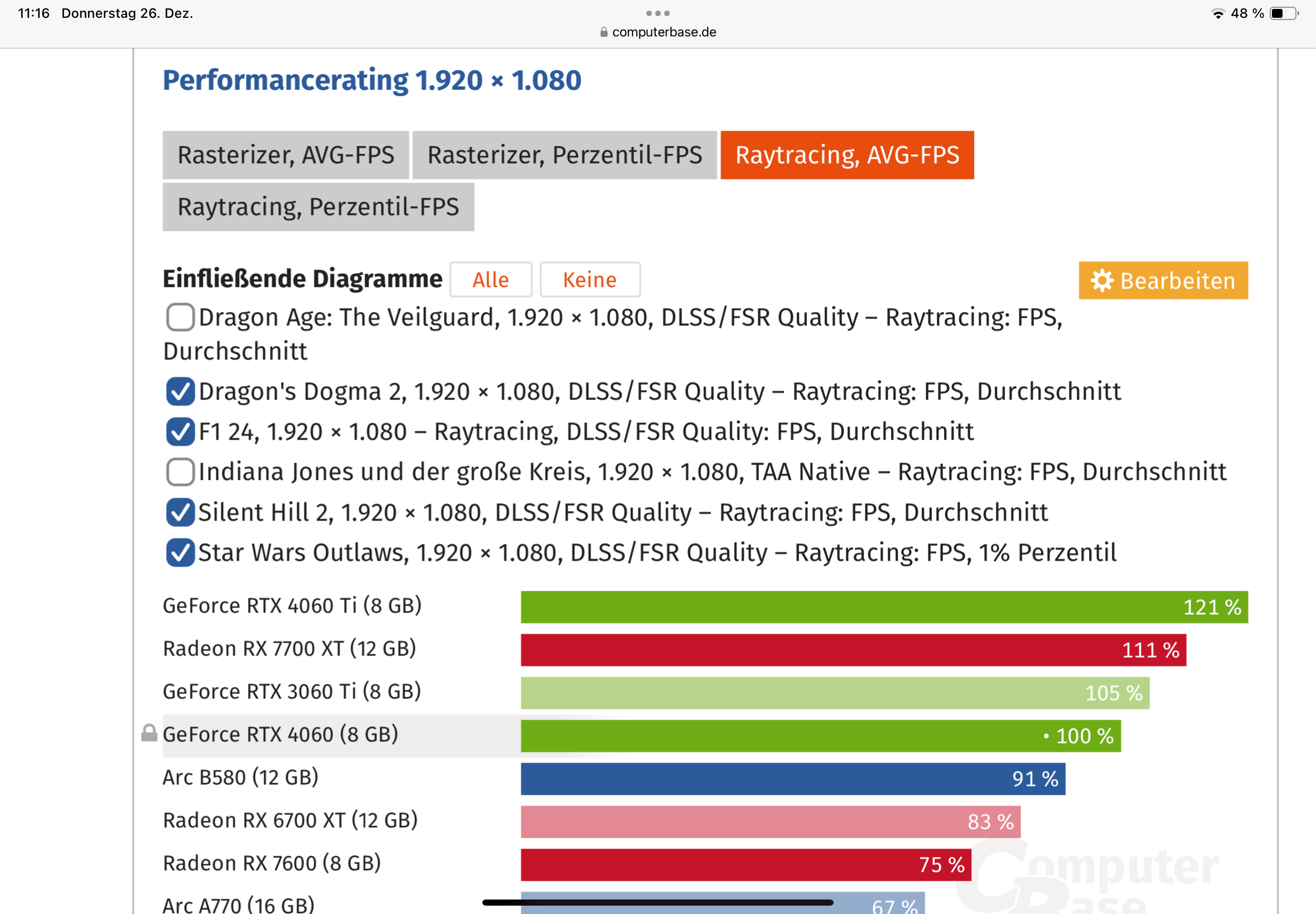 in WQHD bauen 3060ti/7700xt den vorsprung auf 9/21% aus die 4060ti bleibt jedoch mit +1% fast unverändert zur im Abstand zur 4060. habe Dragon Age & Indi absichtlich rausgenommen da die wohl schon in FHD am Speicher verrecken zu scheinen und auf AMD dadruch eh schon besser laufen.