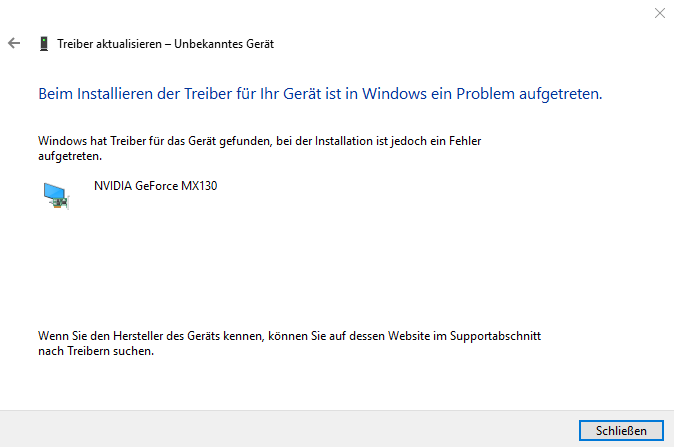 Auch habe ich versucht, die Treiber zum einen über GeForce Experience und über die DVD zu installieren, die dem Laptop beilag. Beide geben mir jedoch den gleichen Error.