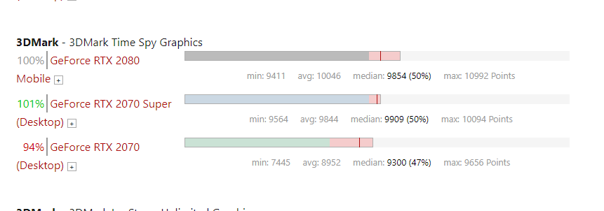 Hier mal von Notebookcheck die Ergebnisse zu den Grafikkarten. Zum Vergleich mein Area-51m hatte 10570 Punkte im Grafikscore, also noch mehr als die avg. von den beiden anderen.