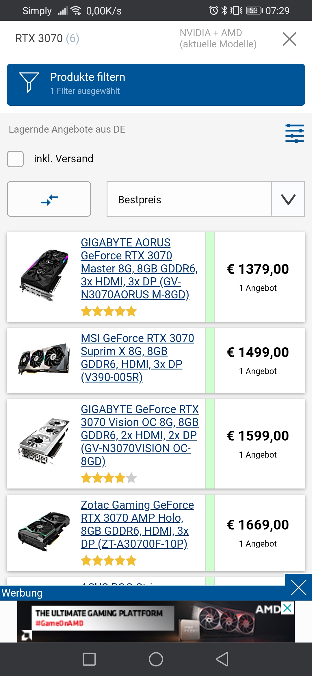 Nur aus Neugierde, sind deine Screenshots schon älter? Ich habe sie ja gerade eben erst gemacht und komme auf minimal andere Preise als du. Meine Filter sieht man ja - Lieferbar in DE und sortiert nach Bestpreis (letzteres ist bei dir gleich).