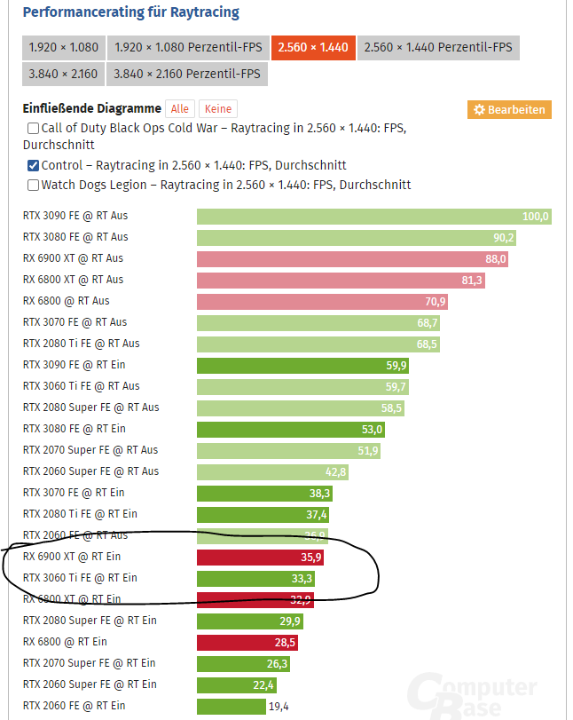 du meinst den Balken der 3070, der 3,1FPS mehr verspricht als "die schnellsten AMD GPUs" (aka 6900xt), selber dabei aber mit lediglich 29FPS noch unter den "magischen Grenze" von 30 verbleibt?xexex schrieb:Die Aussage bezog sich mehr auf Control und ja für mich ist die 3060 Einstieg.