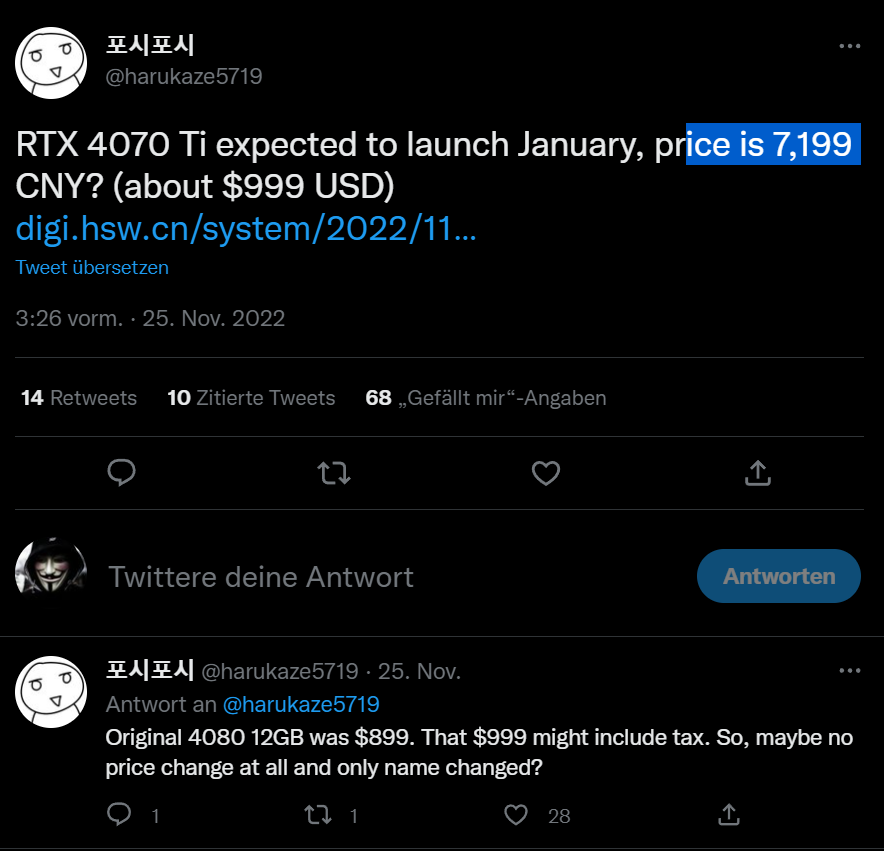 Davon abgesehen, dass immer noch Leute denken, die 7900 XTX kommt hier für 999 Euro raus.