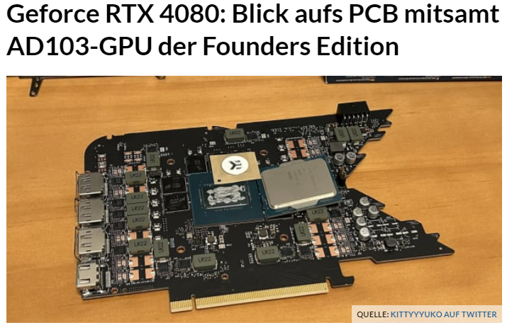 | Gigabyte RTX 4080 16GB Eagle OC | 2.520 MHz (+15 MHz) | Luftkühler (3 Lüfter) | 342×150×75 mm | 1 × 16 Pin | 3 × DP1.4a, 1 × HDMI 2.1 |