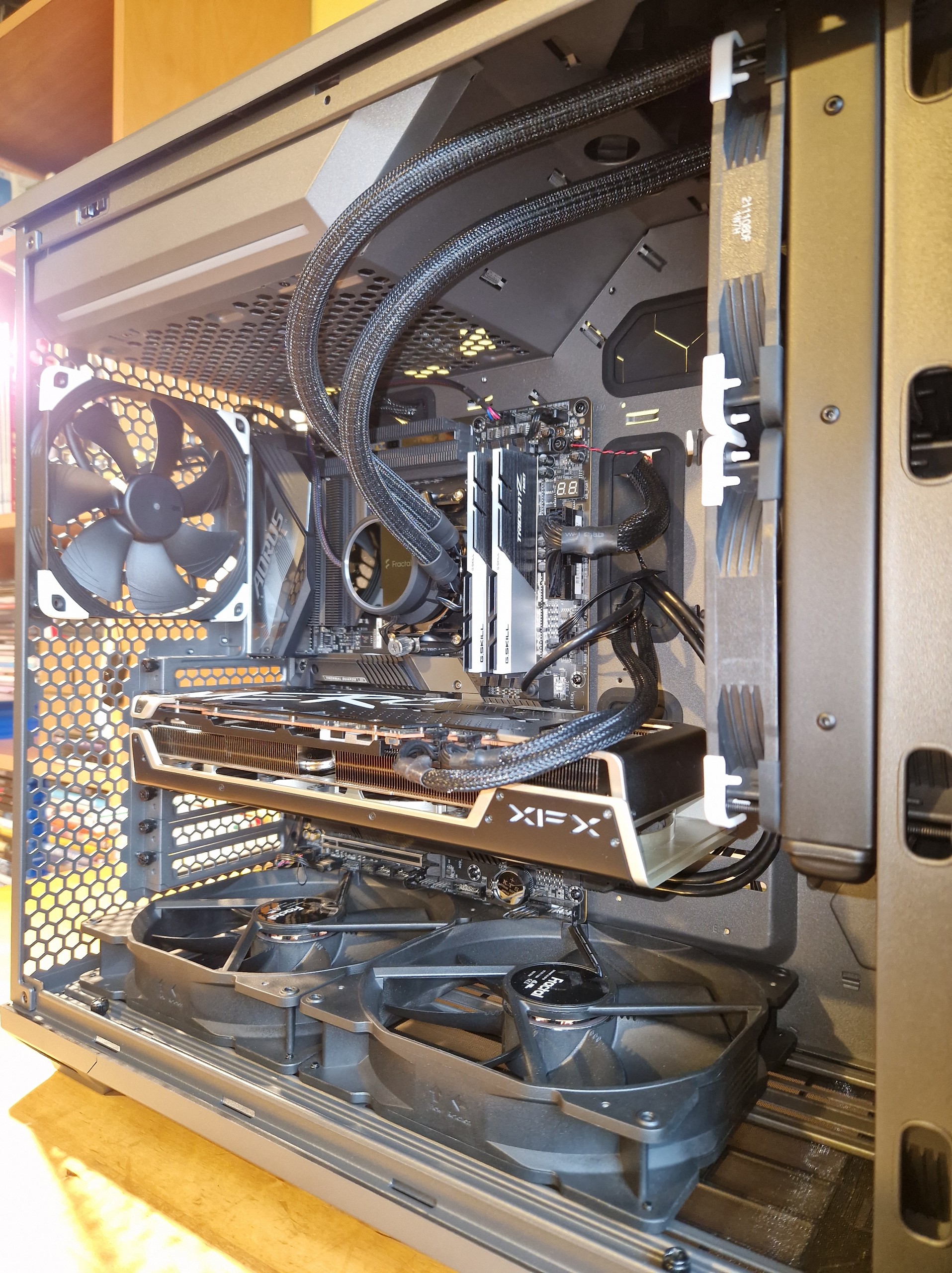 Die Temperaturen sind bei meinem Wechsel vom Dark Base 900 auf das Fractal Meshify 2 XL deutlich gesunken, vor allem die Hitzeglocke unterm Deckel ist einfach nicht mehr vorhanden. Aber auch kommt deutlich mehr Frischluft von vorne rein, logisch ist ja auch Mesh :-)