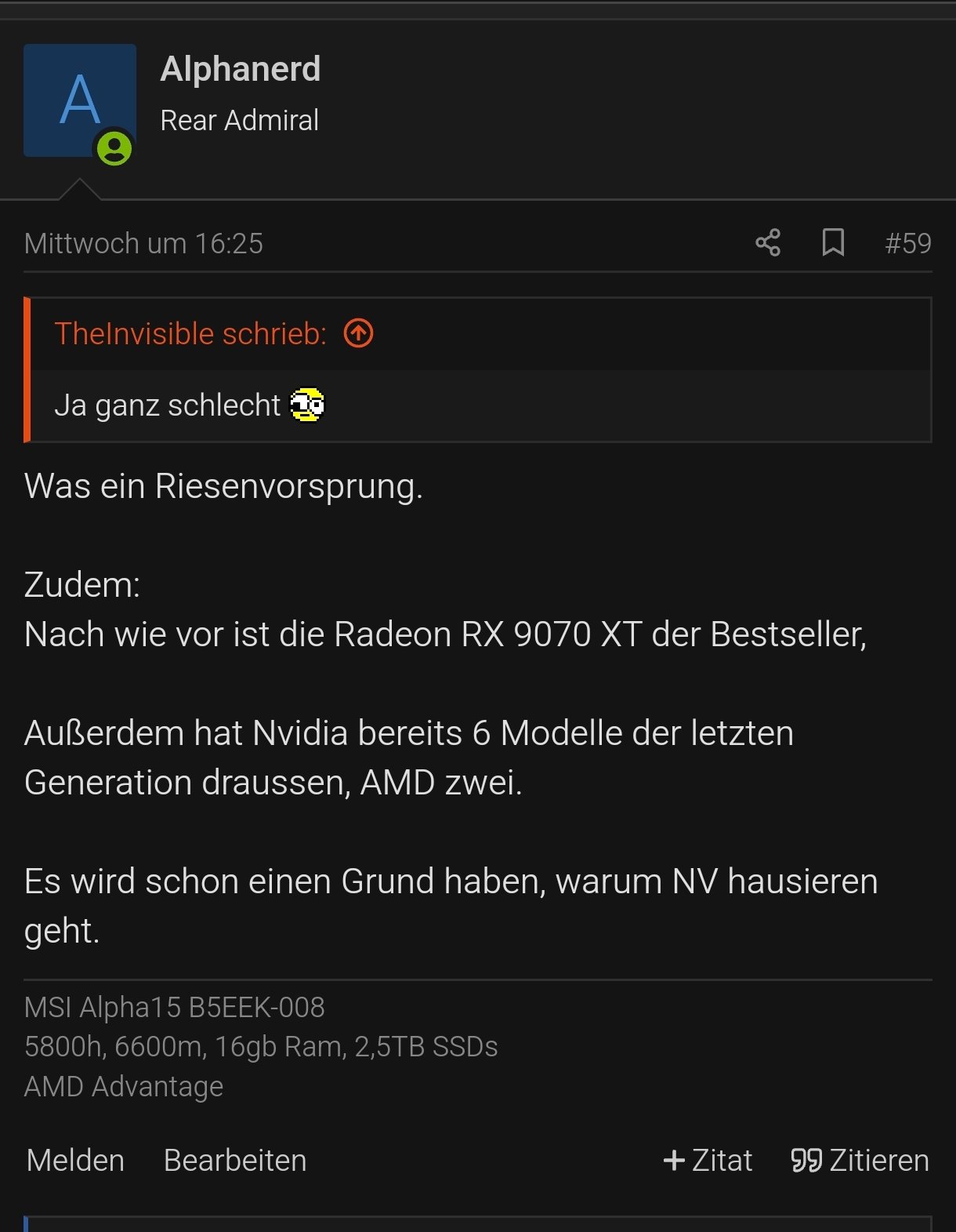 Arrow Lake hat sich von der Architektur und in Sachen Effizienz auch deutlich verbessert, hat aber kaum jemanden interessiert, weil dort AMD zumindest in Spielen noch etwas besser ist. Hier werden Sympathien über Sachargumente gestellt. Ein Grund warum die Diskussionen keinen Zweck haben.