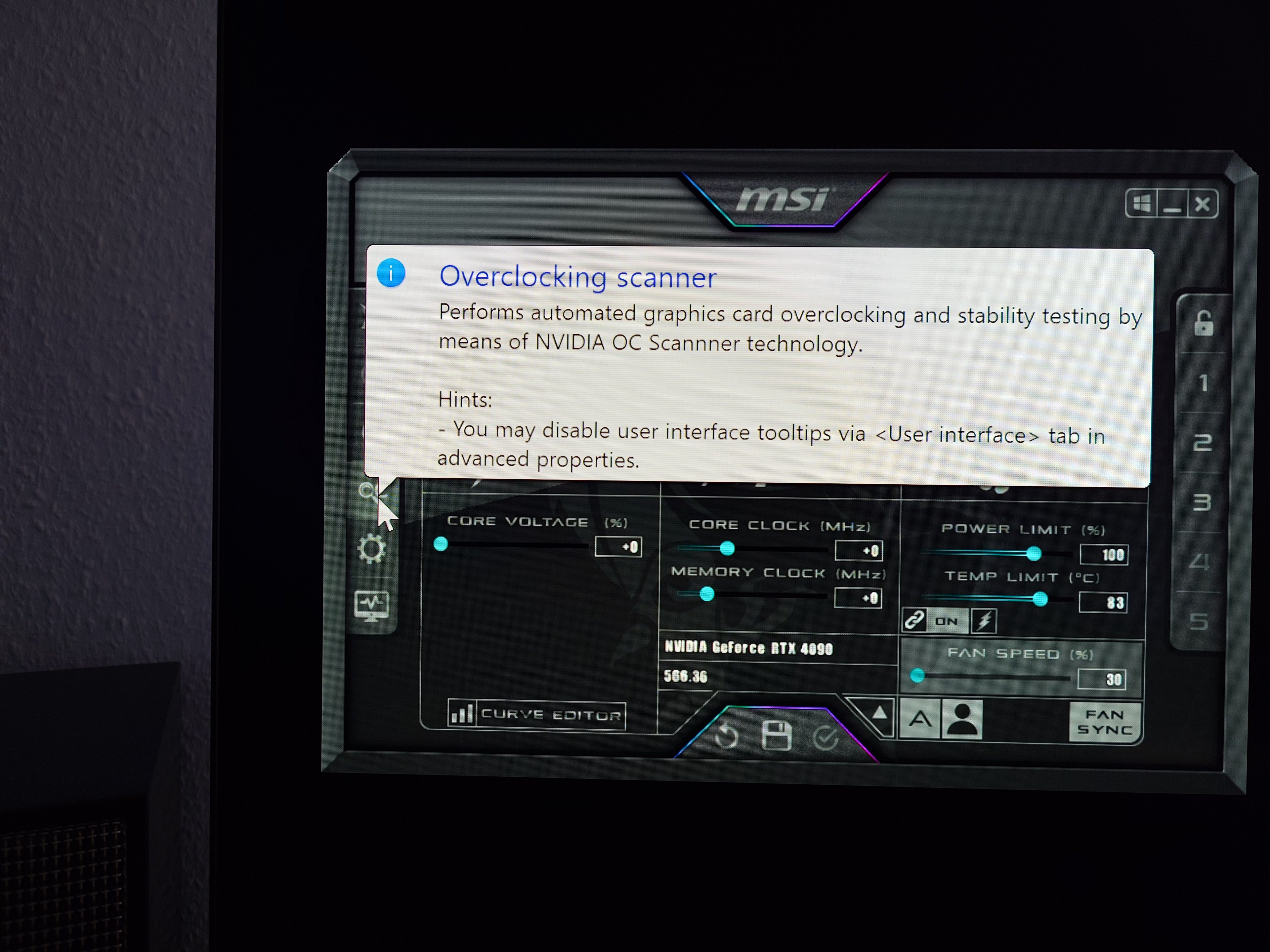 Teil-Last Menü ingame - Profil 3 OC Scanner Curve 1 UV & OC + uncapped PT 133 %
