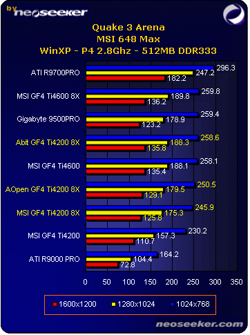 Die Geforce 4 Ti 4200 schafft in 1024x768 Pixeln ca. 230 FPS