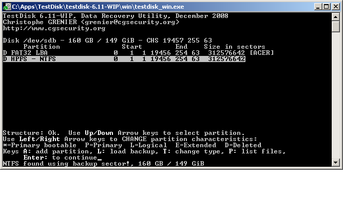 In TestDisk wird eine Partition FAT32 mit 137 GB angegeben (48 Bit LBA Grenze wie auf dem Board beschrieben). Kann mir jemand bei der Deutung dieses Problems helfen? Eine Möglichkeit, die ich mir vorstelle, ist dass die Recoverykonsole von der XP-CD so alt war, dass dort nur Festplatten mit besagter Kapazität unterstützt wurden, und also nur eine Partition mit dieser Kapazität erzeugt werden konnte. Ich habe mit TestDisk "Deep Search" ausgeführt und kein Ergebnis erhalten. Jetzt läuft gerade Active Parition Recovery auf der Suche nach Paritionen. Bisher hat es noch nichts gefunden. Habe jetzt nach etwa 30% abgebrochen.