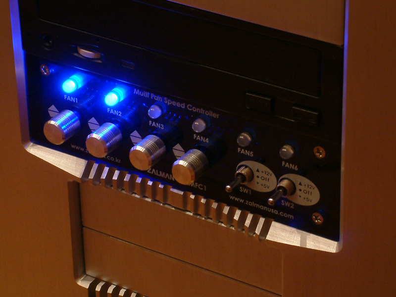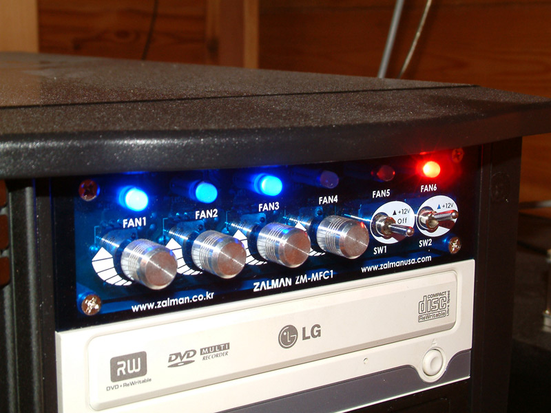Vier Drehregler 7 - 12 Volt. Der Grund: Der Rechner steht bei mir so, dass man die Lüftersteuerung eh nur sieht, wenn man es darauf anlegt - deshalb lohnt die teurere Zalman einfach nicht.