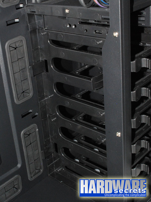 Am festplattenkäfig sind noch 8 Stifte zu erkennen, die die Positionen der Lüfter vorgeben.